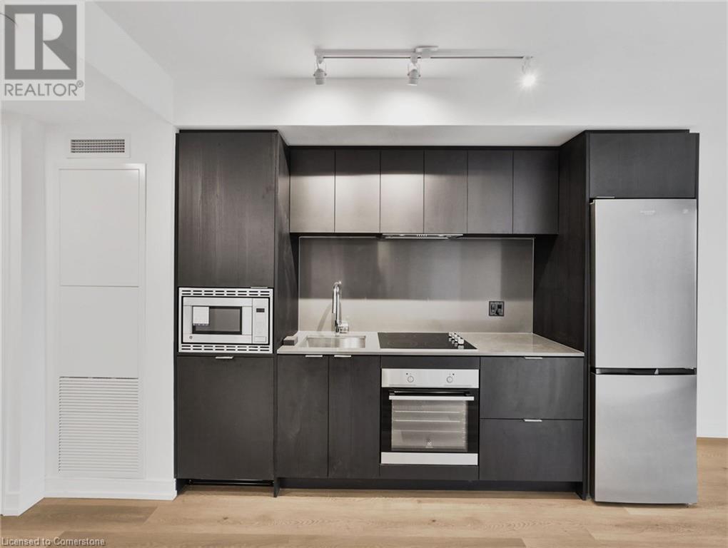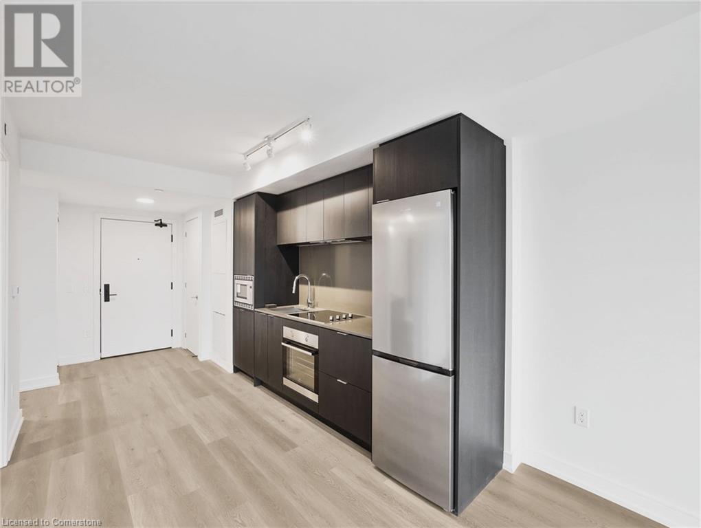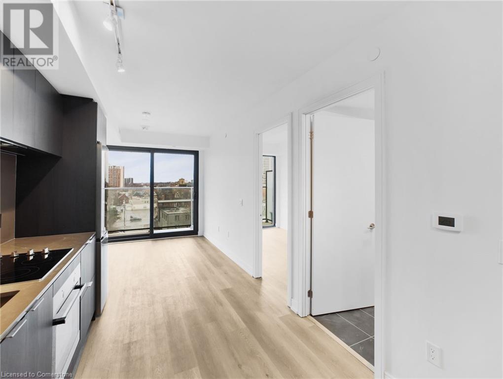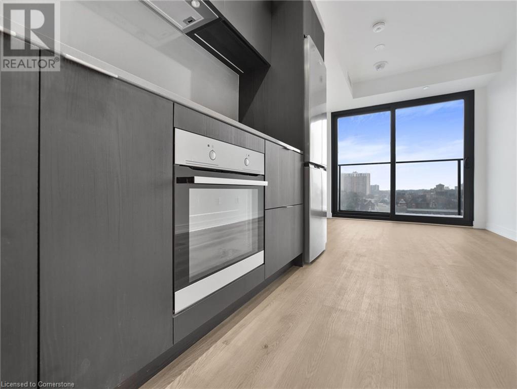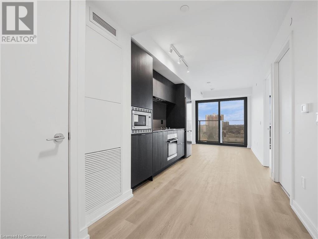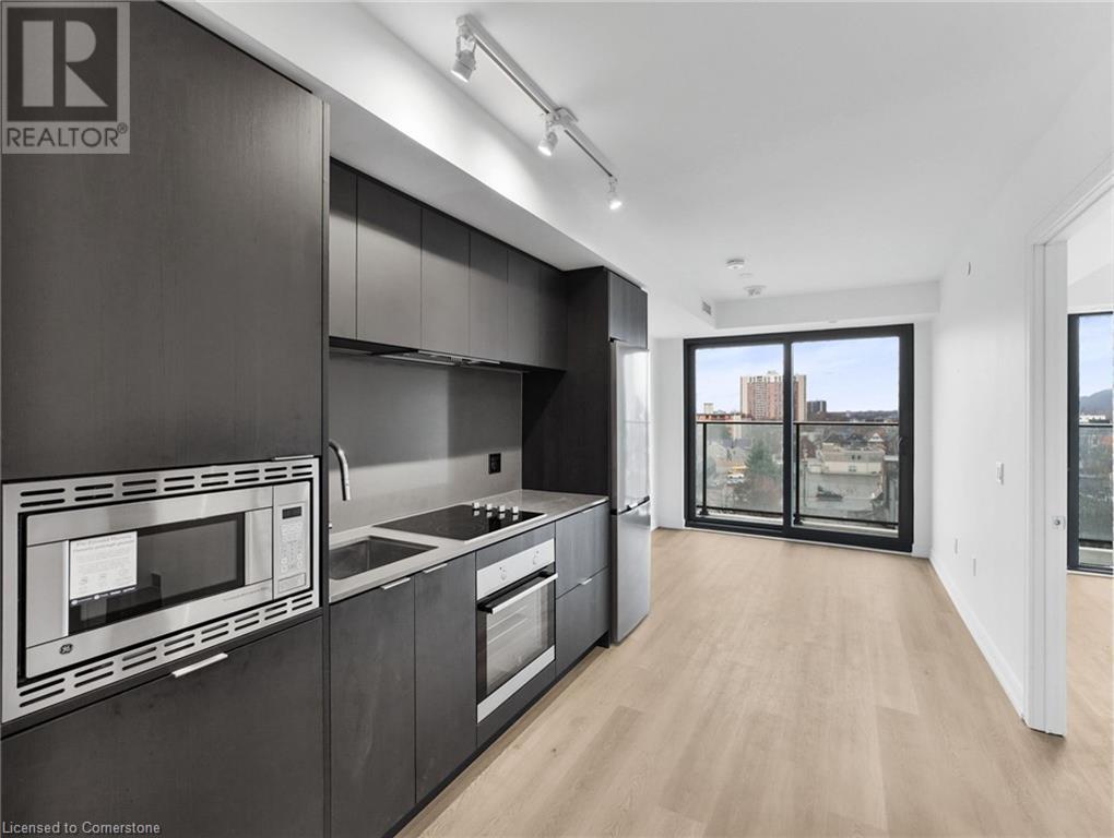 Brand New Home! Never lived in! Located in the heart of downtown Hamilton, this newly built (2024) condominium offers immediate access to all the amenities and dynamic city lifestyle you desire. This one bedroom plus den, features a bright and spacious layout adorned with exquisite modern finishes. The sleek laminate flooring extends throughout the space, leading to a stunning kitchen equipped with contemporary cabinetry, built-in stainless steel appliances, elegant quartz countertops and backsplash. The open-concept living room boasts large windows and a walkout to an expansive balcony that showcases breathtaking views. The generously sized primary suite includes a substantial closet and floor-to-ceiling windows that floods the room with natural light. The stylish four-piece bathroom features porcelain flooring, a custom-designed vanity, quartz countertop, with an under mount sink. Additionally, there is a versatile den that can serve as a home office, nursery, or more. Building amenities include gym/fitness center & lounge. Situated a short distance to McMaster University, Mohawk College, St. Joseph's Hospital, public transit, shopping, restaurants, and much. Conveniently located with easy access to Hwy 403, QEW, Red Hill Valley Parkways, West Harbor, and Hamilton GO. Book your showing today! (id:16766)