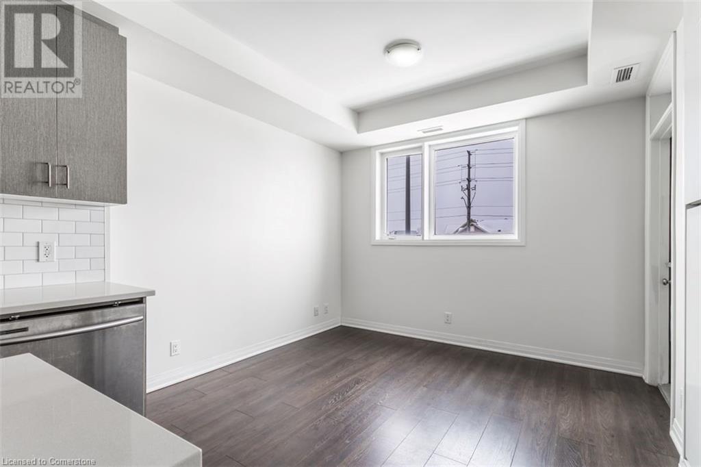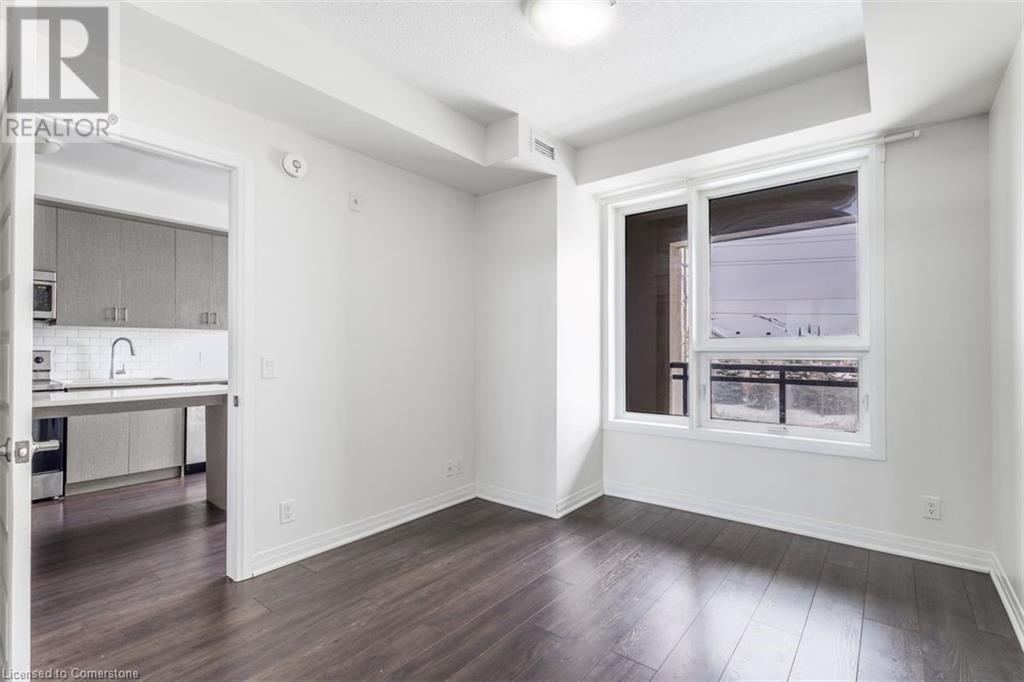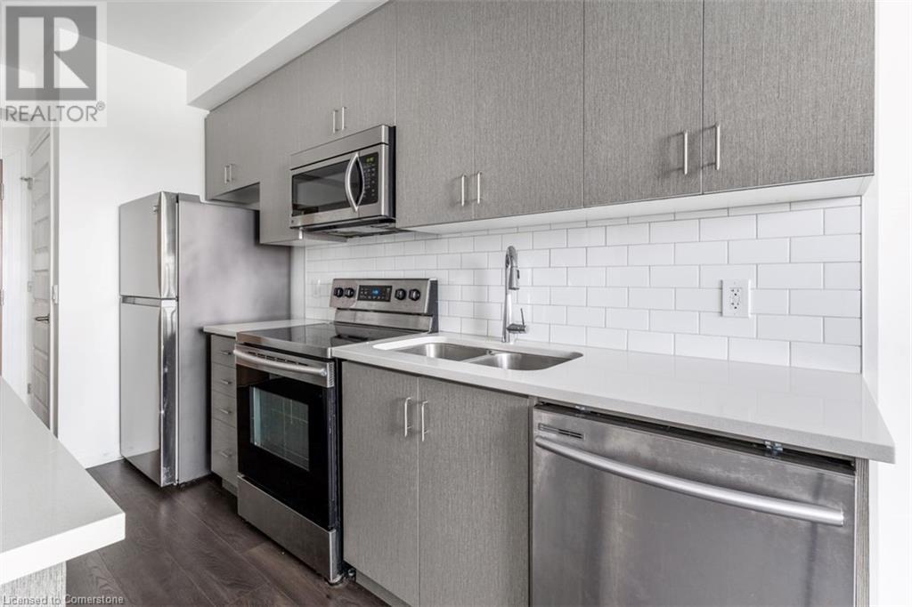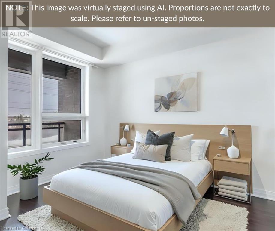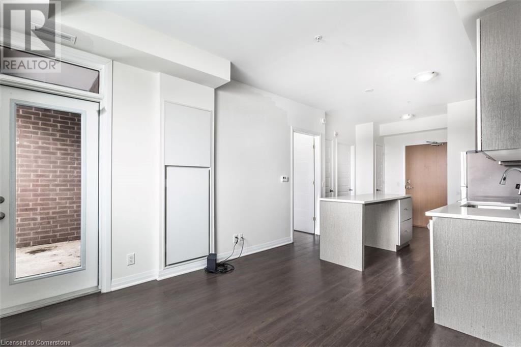 Welcome to Suite 211 at 1105 Leger Way — a stylish 1-bedroom, 1-bathroom condo that blends modern design with urban convenience in the heart of Milton. Step inside to find a sleek, contemporary kitchen featuring stainless steel appliances, quartz countertops, and upgraded oversized island—ideal for casual dining or entertaining guests. The open-concept living and dining area offers a seamless layout perfect for relaxing or hosting family and friends, with natural light flowing in through the large window and glass door that lead to your private balcony. Enjoy morning coffee or evening sunsets overlooking peaceful greenspace and a nearby pond—your outdoor retreat in the city. The suite includes a spa-inspired full bathroom, and the convenience of in-suite laundry. This well-appointed unit also includes one underground parking space and a private storage locker. Ideally located just minutes from vibrant shops, restaurants, trails, and everything Milton has to offer—plus quick access to major highways and transit—this home is a commuter’s dream and urban lifestyle all in one. This suite is vacant and move-in ready with a quick closing. A great space to call your new home! AI-generated virtual staging photos of the suite interior used for inspiration (id:16766)