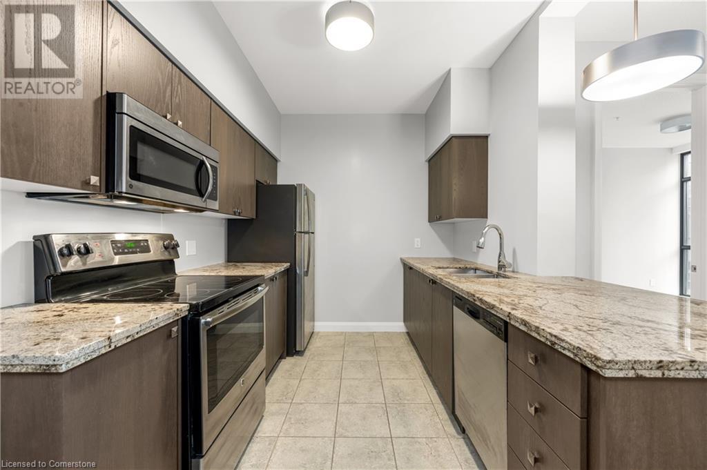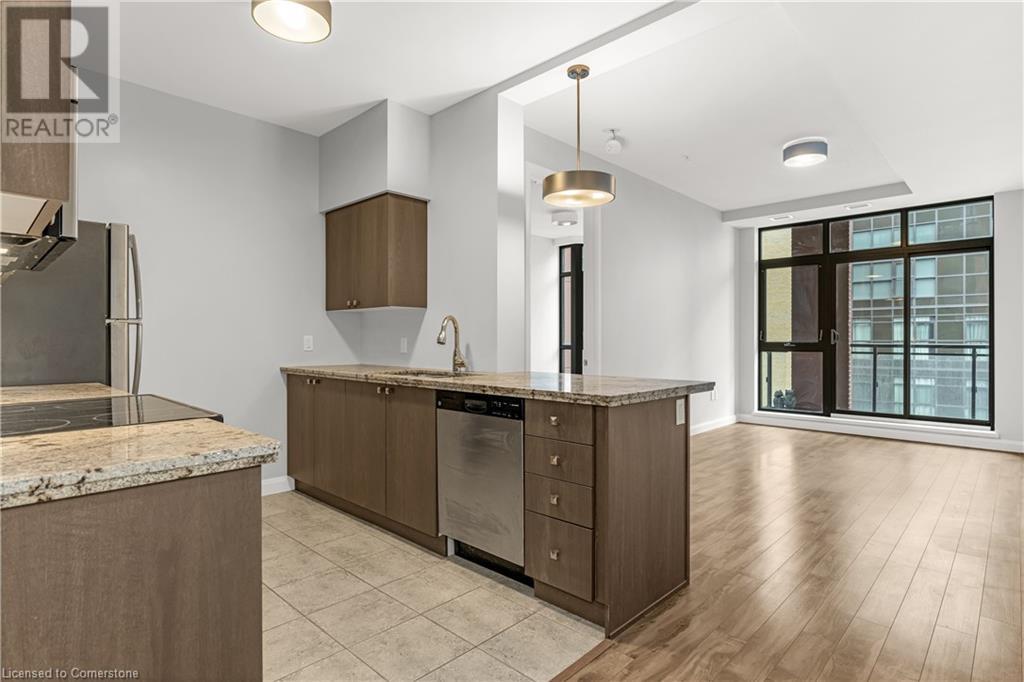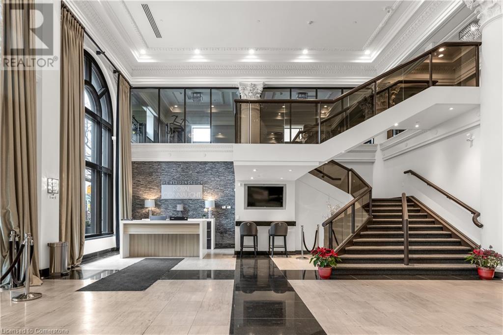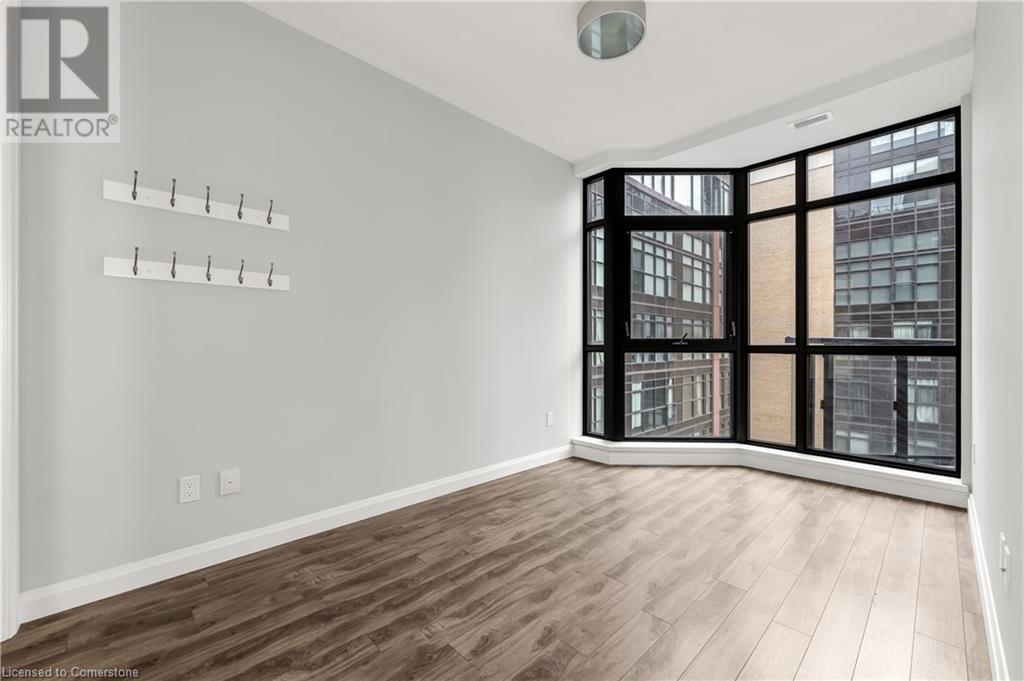 Never-tenanted beautiful condo unit! Experience unmatched luxury at the Royal Connaught nestled in the heart of Hamilton. This iconic residence offers an unparalleled blend of sophistication and convenience, just steps from many dining, entertainment, and shopping destinations. Located on the 11th floor, just one level below the penthouse, this upgraded 1-bedroom, 1-bathroom executive suite redefines modern elegance with 9-foot ceilings that enhance the sense of space and airiness. The unit boasts a spacious primary bedroom, a sleek kitchen adorned with stainless steel appliances and granite countertops, in-suite laundry for added convenience and a private balcony overlooking a tranquil inner courtyard and BBQ terrace Shared facilities include an exclusive gym, theatre room, media room, and party room, ensuring every amenity you need is at your fingertips. Enjoy the convenience of a Starbucks right below the building and the vibrancy of Hamilton's most central downtown location. Plus, enjoy the security and convenience of your own underground parking spot. Please call 905 523 9837 if attending open house and realtor will will let you in. (id:16766)