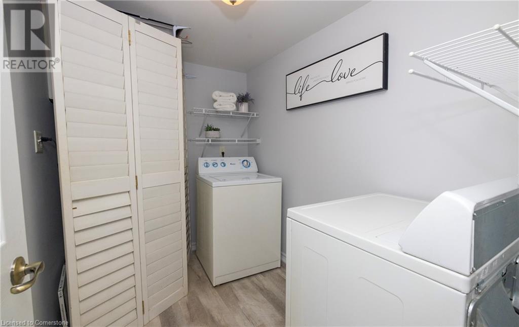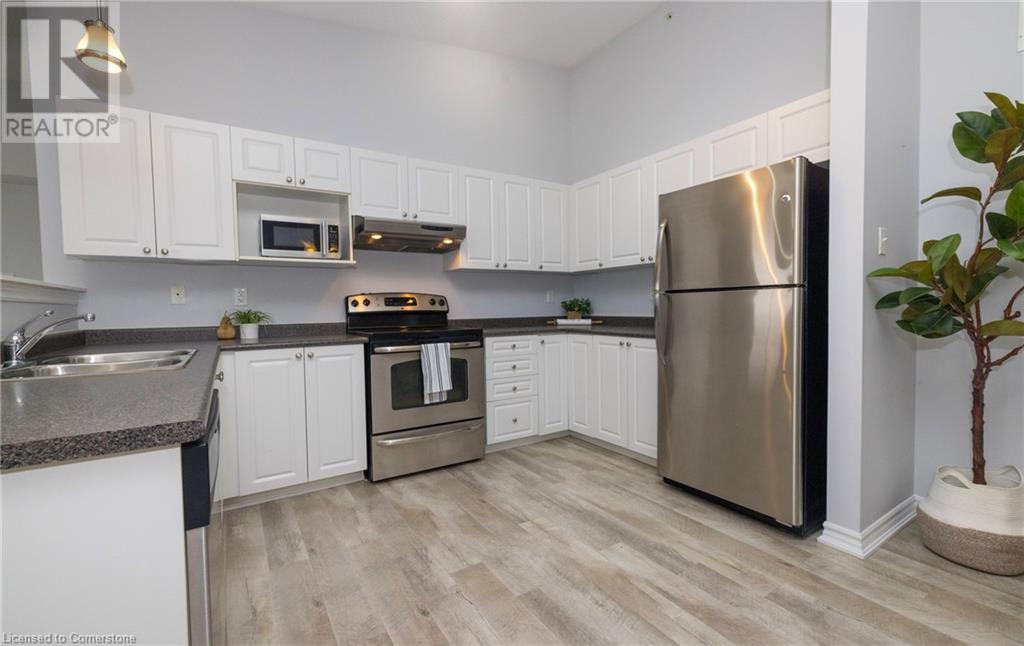 Welcome to Maple Crossing, one of Milton's most desirable condo communities! This top-floor corner suite Cambridge model offers nearly 1,200 sq. ft. of bright, open-concept living space with 2 bedrooms and 2 full bathrooms. Featuring soaring 12-foot vaulted ceilings, light grey laminate flooring, and ceramic tile throughout, this well-maintained unit provides both style and functionality.Enjoy a spacious kitchen with ample cabinetry, a generous laundry room, and two private balconies perfect for morning coffee or evening relaxation. Included are two underground parking spaces and an exclusive-use storage locker for added convenience. The building offers a fantastic array of amenities, including a car wash bay, exercise room, gym, party/meeting room, visitor parking, and gas BBQs are permitted ideal for hosting and everyday living. Conveniently located at James Snow Parkway and Highway 401, you're close to transit, major shopping, banks, the library, the Milton Centre for the Arts, and the GO station. A rare opportunity to enjoy low-maintenance living in a prime location! (id:16766)