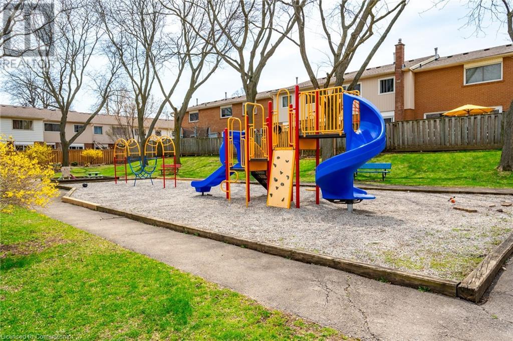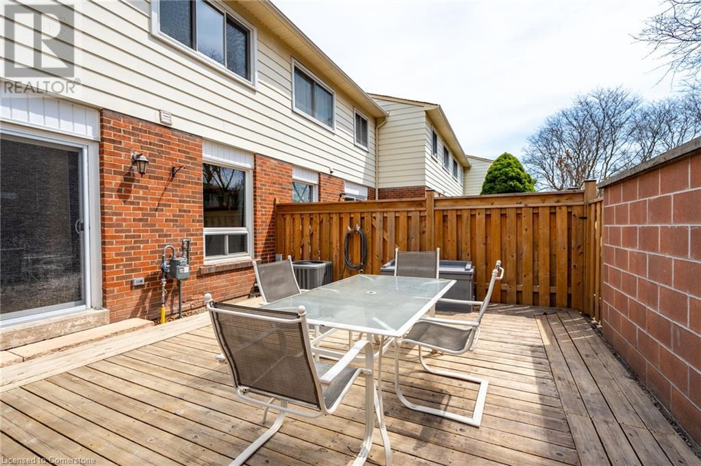 Welcome to this great end unit townhome featuring 3 bedrooms, 1.5 bathrooms and a single car garage, nestled in a desirable complex in the sought-after Palmer neighbourhood! Enjoy easy living with lawn maintenance, snow removal, ample visitor parking, an outdoor swimming pool, playgrounds, and more, all included in the monthly condo fee. You’ll be impressed by the curb appeal, abundant natural light, and functional floor plan that this great home presents. The living room is spacious and bright and opens into the dining area. The sliding door walkout leads to your lovely backyard with an open deck, perfect for relaxing outdoors, hosting, and barbecuing. The kitchen is well-designed with tasteful tones, plenty of cabinetry and counter space, and room for a breakfast nook. Completing the main level is a powder room and an inside entry from the garage. Upstairs, you will find the large primary suite with a generous walk-in closet and a large window overlooking the backyard, two additional spacious bedrooms with ample closet space, a tasteful 4-piece bathroom, and a hallway linen closet. The fully finished basement features a large recreation room with endless potential for a media room, home gym, or kids' play area, plus a spacious laundry room, a cold room, and lots of storage space. This well-managed complex is rich with community, the outdoor swimming pool is a major bonus during the summertime, and the playgrounds are perfect for the kids to play, including one within view of this unit. Excellent, family-friendly, and quiet location close to well-rated schools and scenic parks and trails, including Palmer Park and the Hydro Path trail. You’re a short drive to all amenities, the QEW, Highway 407, the beautiful Escarpment, renowned golf courses, and more. Your next home awaits! (id:16766)
