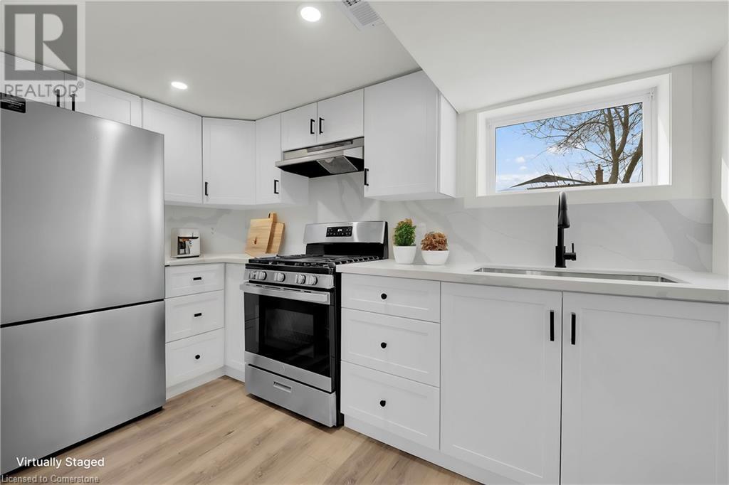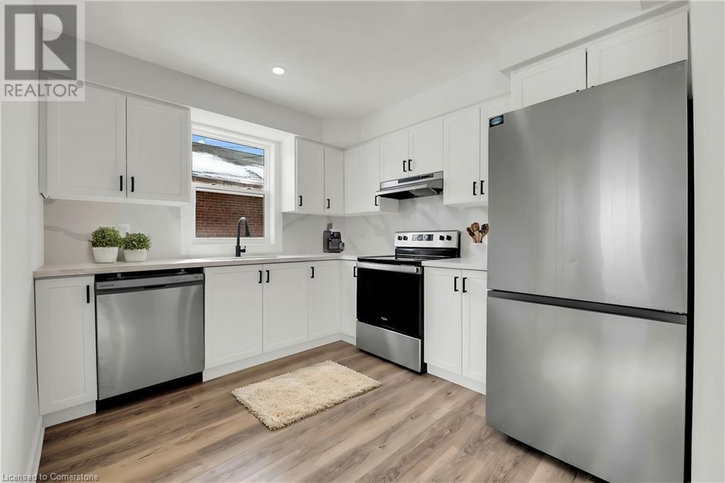 LEGAL additional dwelling unit in a highly desirable Hamilton Mountain neighborhood! Completely renovated from top to bottom, this charming brick bungalow sits on a large lot and offers two separate units, each with its own private entrance. The main floor features an all-new eat-in kitchen with sleek quartz countertops, custom cabinetry, pot lights, and brand-new stainless steel appliances. The spacious living room boasts large bay windows that allow natural light to flood the space. Down the hallway, you'll find three generous-sized bedrooms, a 4-piece bathroom, and convenient main floor laundry. The fully finished basement is a self-contained legal apartment with its own private side entrance. This unit includes a new kitchen with quartz countertops, a large family room, two bedrooms, a 3-piece bathroom, and its own laundry room. With parking for six cars, this home also offers a large, fully fenced backyard that creates a private oasis, perfect for outdoor relaxation and entertaining. Located in a family-friendly neighborhood, the property is within walking distance to top-rated schools, parks, and all amenities. It’s just a two-minute drive to the LINK and Redhill, with easy access to the QEW, 403, and 407. This home is perfect for investors or those looking for a multi-generational living space. Don’t miss out on this incredible opportunity – book your private viewing today! (id:16766)