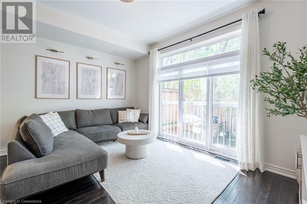 Discover this beautifully updated, rarely offered three-level townhome in the heart of Aldershot village. Located in a quiet, well-managed complex, this home is just steps from transit, shopping, dining, parks, schools, and all essential amenities. Easy highway access makes commuting a breeze. Offering just over 1,400 square feet, two generously sized bedrooms, two bathrooms and an attached garage, this home provides the perfect blend of comfort and function. The main level features a bright and spacious open concept kitchen that features modern white cabinets, granite counters, a beautiful backsplash, stainless steel appliances and opens to a large sun-drenched family room with a Juliet balcony offering a perfect space for relaxing with a morning coffee. Also on the main level, you will find a separate formal dining room that can be multi-purposed to serve as a home office, or even a third bedroom. Upstairs offers two large bedrooms, each with custom feature walls and ample closet space. A full bathroom and a laundry room on the second level offers true convenience. The fully finished lower level adds more living space and offers convenient direct access to the one car garage. You’ll enjoy easy access to the backyard through the convenient walk out. The recently upgraded interlock patio creates a clean, stylish, and hassle-free outdoor space. Whether you're a first-time buyer, young professional, or looking to downsize, this turnkey property offers the perfect combination of style, comfort, and location. Homes in this community are rarely available—don’t miss this opportunity to own a move-in ready gem in one of Burlington’s most desirable neighborhoods. Don’t be TOO LATE*! *REG TM. RSA. (id:16766)