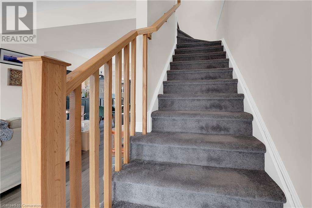 Stunning Freehold END UNIT Townhouse in a Prime Location. Welcome to this exceptional, freehold townhouse that perfectly blends style, functionality, and an unbeatable location. This beautiful 2-bedroom, 2-bathroom home offers a private backyard, an attached garage with convenient inside entry, and additional driveway parking—everything you need for comfort and convenience. As you step inside, you’ll be greeted by the inviting open-concept main floor, featuring a sleek, modern kitchen that flows effortlessly into the spacious living and dining areas. Whether you're hosting guests or relaxing at home, this thoughtfully designed layout adapts to your lifestyle with ease. Upstairs, the luxurious primary bedroom is a true retreat, complete with a generous 3-piece ensuite and a walk-in closet. A well-sized second bedroom and a beautifully appointed 4-piece bathroom offer additional space and comfort for all. Located in the sought-after Stoney Creek Mountain neighborhood, this home is directly across from Saltfleet High School and just minutes from all the amenities you need, including easy highway access via the Redhill Valley Parkway and Lincoln Alexander Parkway. (id:16766)