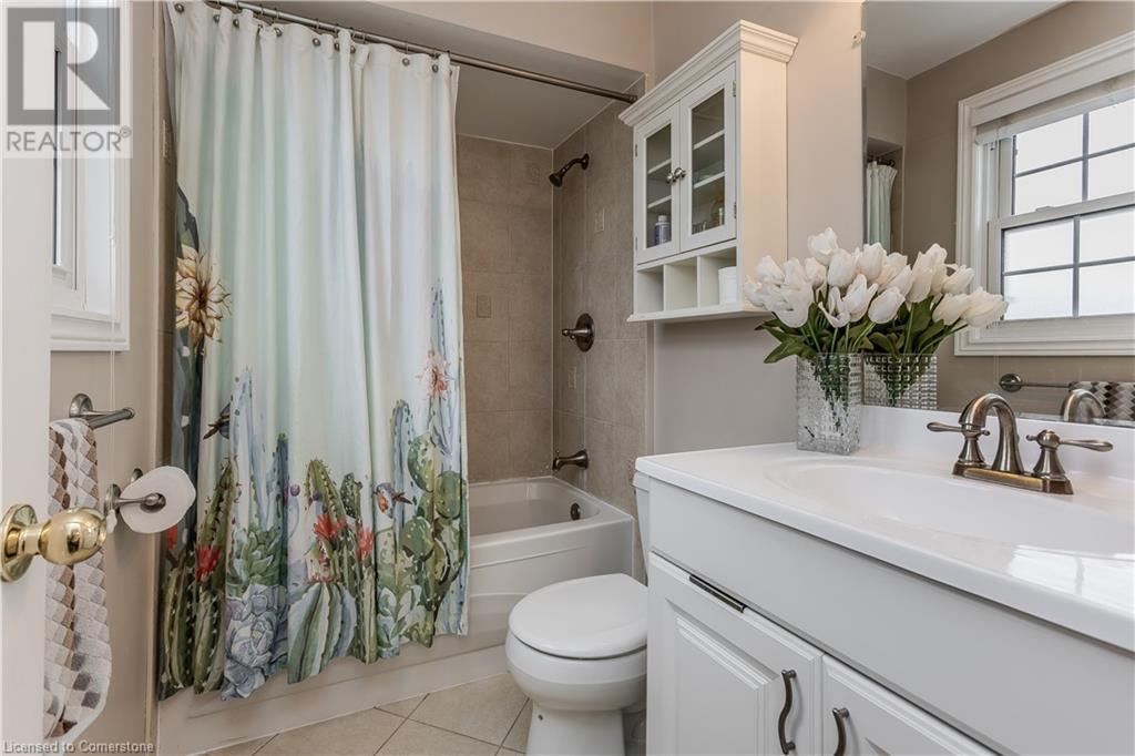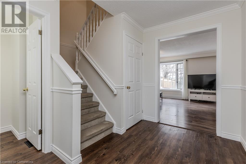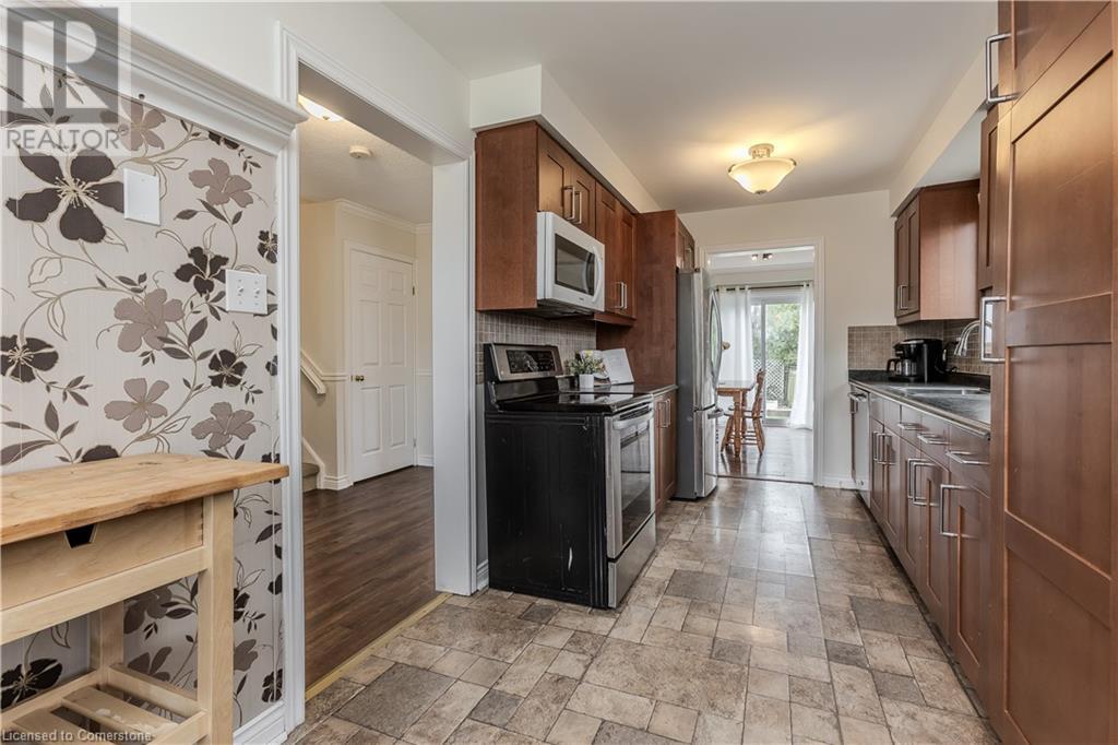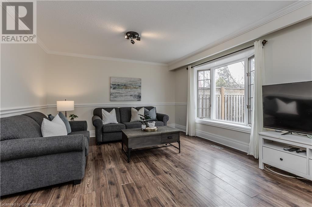 A rare gem in the heart of Tyandaga, this semi-detached home with 2071 sf of living space is a true family haven, backing directly onto Fairchild Park — offering both privacy and picturesque views of mature trees and open green space. Ideally located close to top-rated schools, parks, trails, and minutes to downtown, it blends natural beauty with everyday convenience. The curb appeal is effortless thanks to an “autopilot†perennial garden — no watering required, with blooms that change throughout the seasons. The interlock stone walkway and EV charger-equipped garage add both charm and functionality to the exterior. Inside, you’ll find a bright and welcoming main floor featuring newer laminate flooring, a handy 2pc powder room, and a charming kitchen with stainless steel appliances, ample cabinetry with slide-out drawers, a recently upgraded tap, tile backsplash, and a cozy breakfast nook with a large window. The open-concept living and dining area is flooded with natural light from a bay window and features smart wifi-enabled light switches, upgraded light fixtures, and walkout to the back deck. Upstairs, the updated flooring continues throughout. The spacious primary bedroom includes a large window and 4pc ensuite. Two additional well-sized bedrooms and a 4pc main bath with an oversized vanity complete this level. The fully finished basement offers a large rec room with a brick-surround sealed-off fireplace that can be easily converted, laundry, and a bathroom rough-in — ideal for future customization. Step outside into a backyard designed for both family time and sustainability. Enjoy a fully fenced yard, wood deck with built-in bench seating, a stamped concrete patio, fresh sod (2024), and space for kids to run around. The organic raised bed garden, raspberry bushes, and rain barrel make it a dream for green thumbs. A turnkey opportunity in one of Burlington’s most coveted family neighbourhoods. (id:16766)