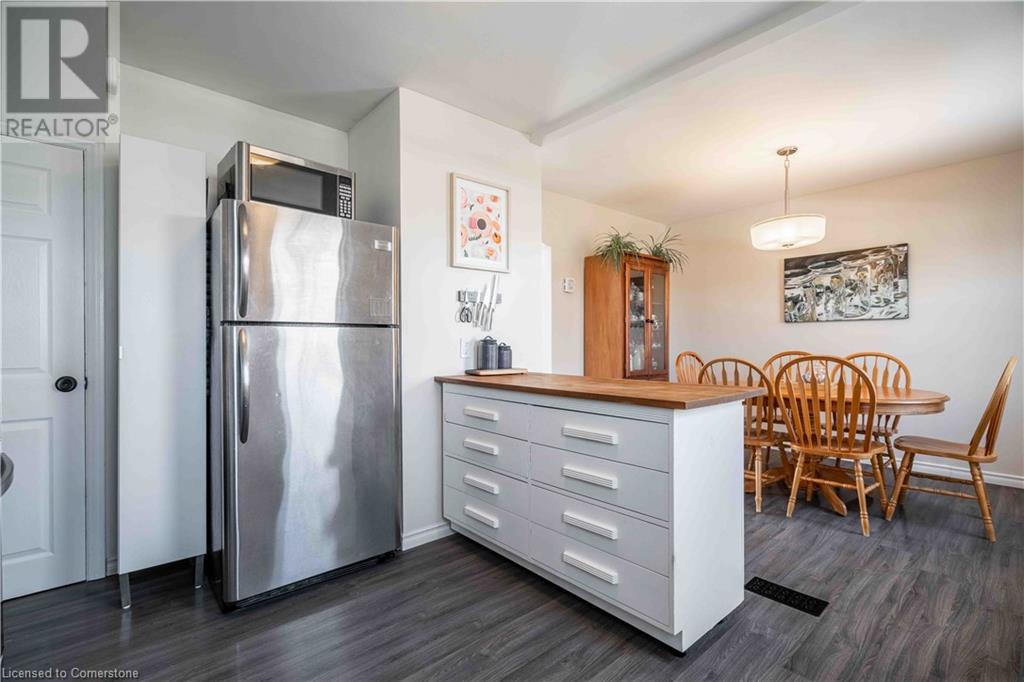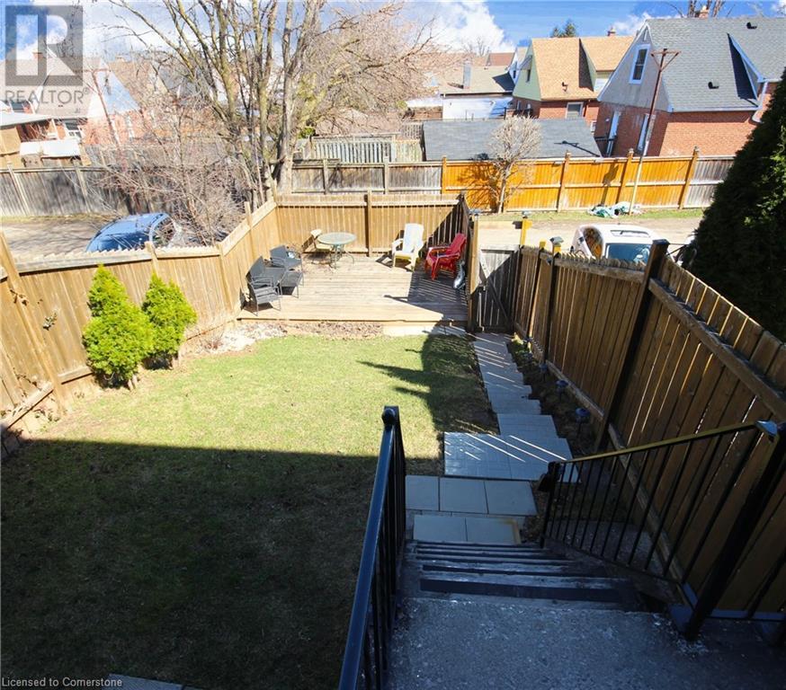 Well-Maintained & Fully Freehold Townhome! No fees, no restrictions—make it your own! This spacious home offers incredible value for its size and prime location in a family-friendly neighborhood. Conveniently close to Redhill, HSR transit, groceries, banks, parks, schools, and scenic hiking trails. Parking at the rear makes for a private main entrance, with two dedicated parking spots. The oversized lot provides a secluded feel despite being on a main road. Inside, enjoy a bright and airy living room, a dining area overlooking the yard, and a kitchen island perfect for meals and entertaining. Upstairs, you'll find three bedrooms with original hardwood floors and a refreshed bathroom with a brand-new vanity (2025). The backyard is a standout feature, offering a spacious deck—ideal for relaxing, entertaining, or summer BBQs with new steps leading to the house. The basement boasts impressive 10.5-ft ceilings, offering endless possibilities—extra storage, a home gym, or future living space. Major updates include a state-of-the-art smoke, carbon monoxide, and water leak sensor system (2019), a new AC (2018), most windows (2017) and a new stove and range hood (2024). Appliances are included with the sale, including the fridge, stove, microwave, washer, and dryer, making this home move-in ready and hassle-free. Perfect for families, young professionals, or investors—this home offers space, privacy, and a great opportunity in a rising market. Don't wait, call before it's gone! (id:16766)