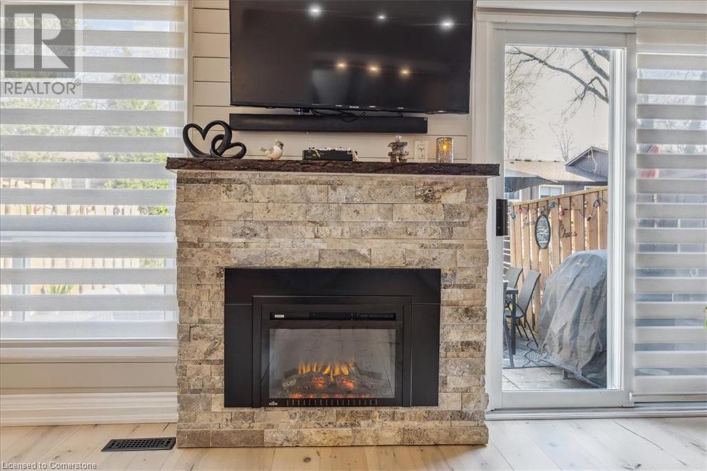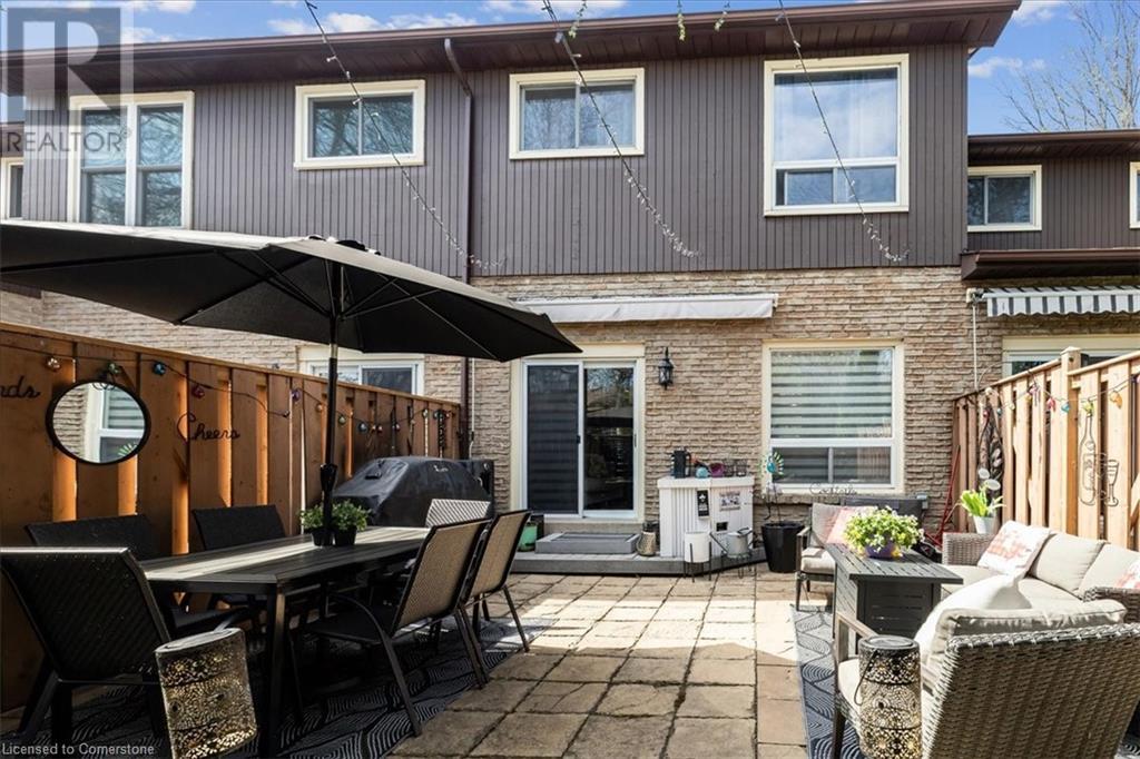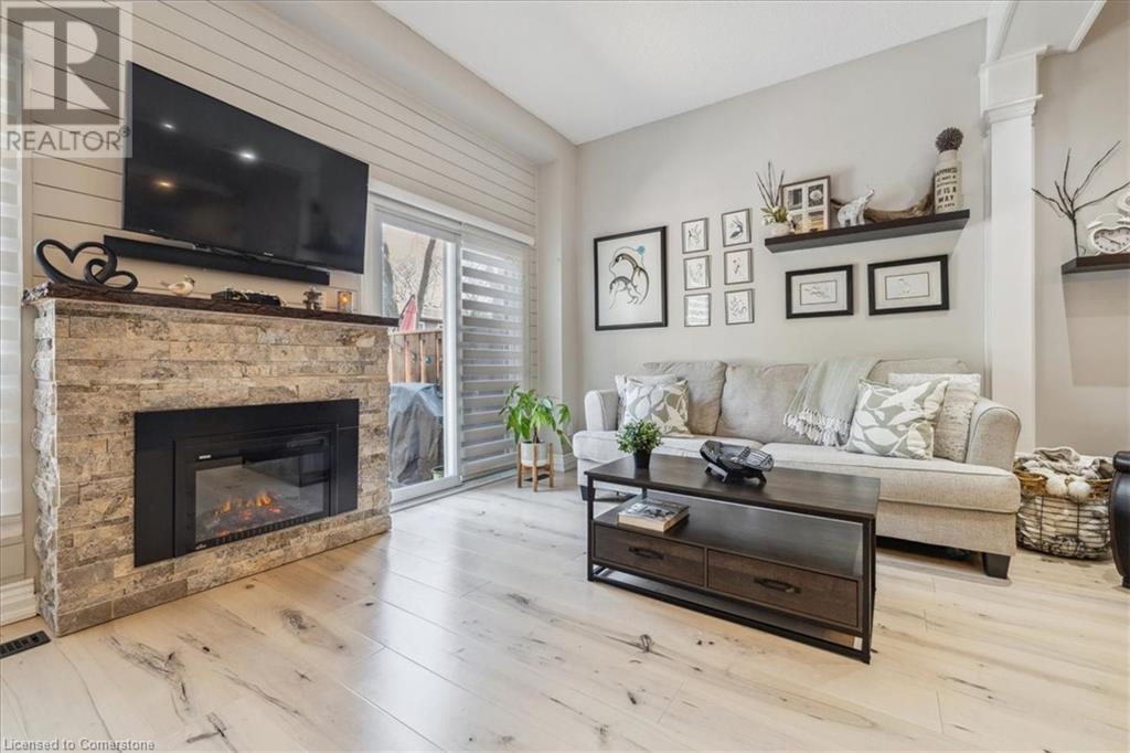 Better Homes and Gardens. You can enjoy over 2000 square feet of relaxing living space in the popular and highly desirable Cavendish Woods. Meticulously maintained with professionally finished renovations throughout which include extensive updates and upgrades. Step inside to discover thoughtfully designed open concept main floor with extensive pot lighting and 10’ ceilings! Kitchen includes quartz countertops, ample cupboards, sleek stainless-steel appliances and breakfast bar. Quality engineered hardwood on main level. Newer flooring on upper and lower levels. Great room has electric fireplace. Walk out to private patio, great for entertaining, with Muskoka stone interlock and a gas line for BBQ. Shiplap wood on front and rear walls. All stairs have been hardwood capped with maple. Primary bed has 3-piece ensuite and a walk-in closet. All closets have been upgraded. Other bedroom also has walk in closet. Lower level has newer flooring, sound proof walls and ceiling surround sound speakers in professionally finished rec room. New washer and dryer (2024). Extensive painting throughout. Convenient access from Cavendish Drive right into your driveway! Fee includes water, Bell cable, high speed internet, exterior maintenance, building insurance and snow removal. (id:16766)