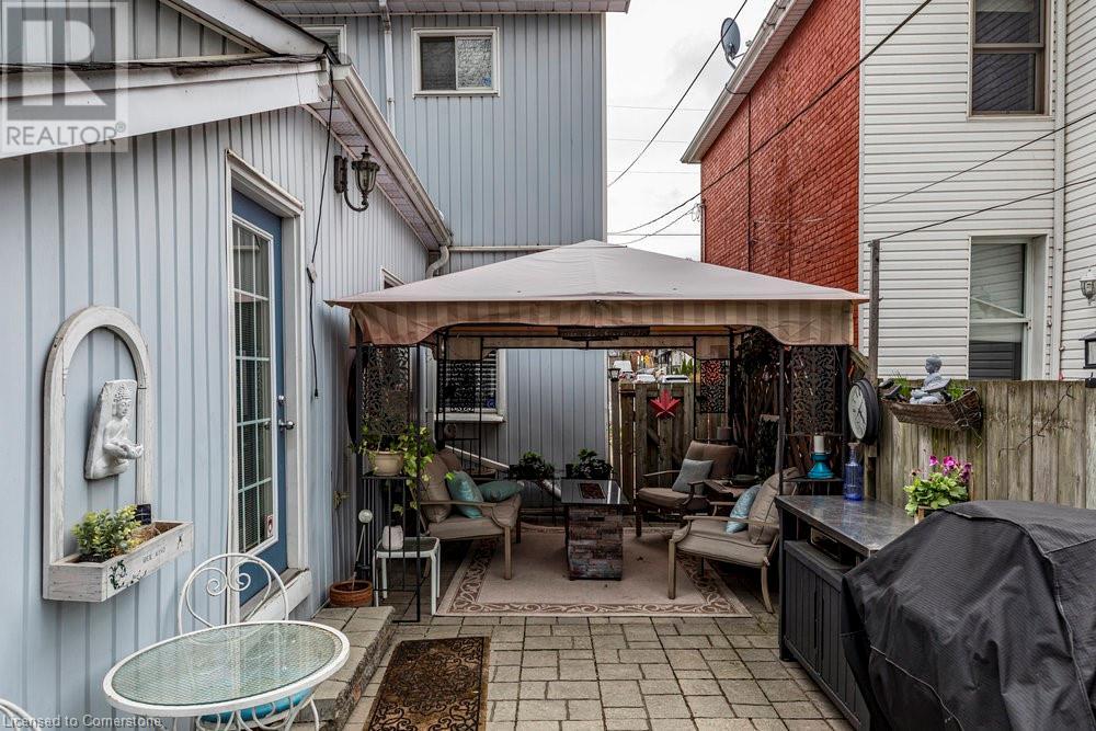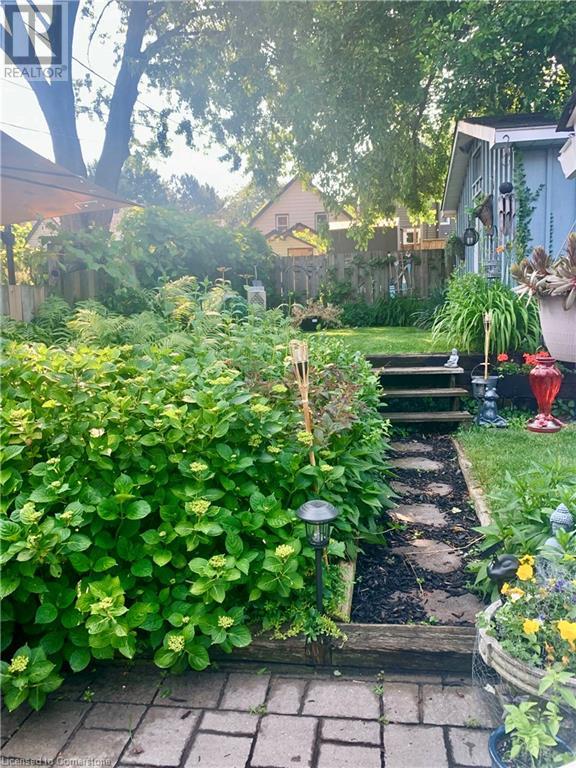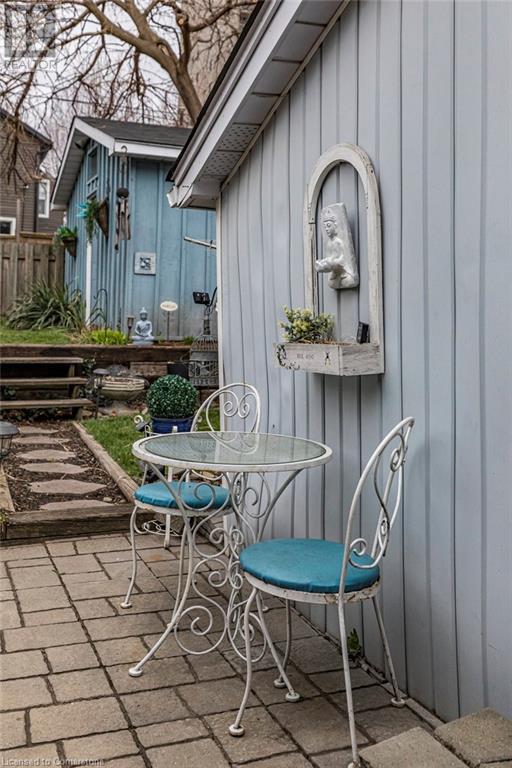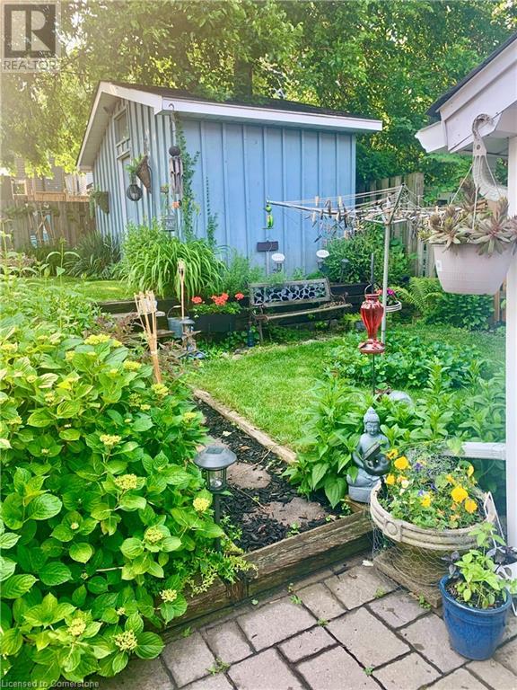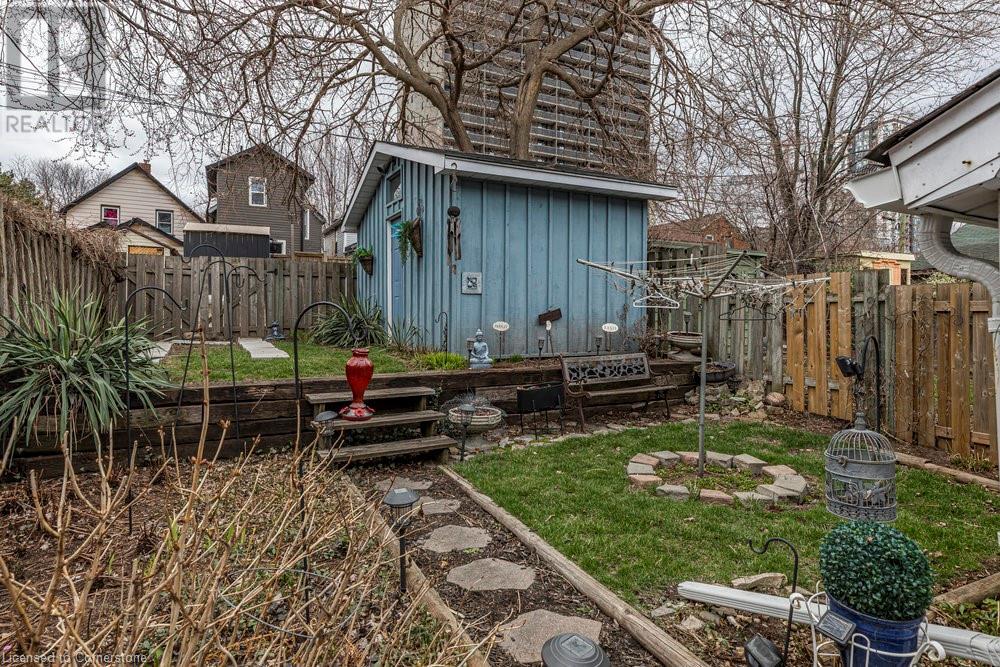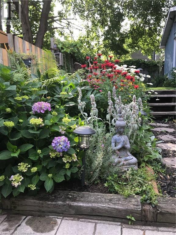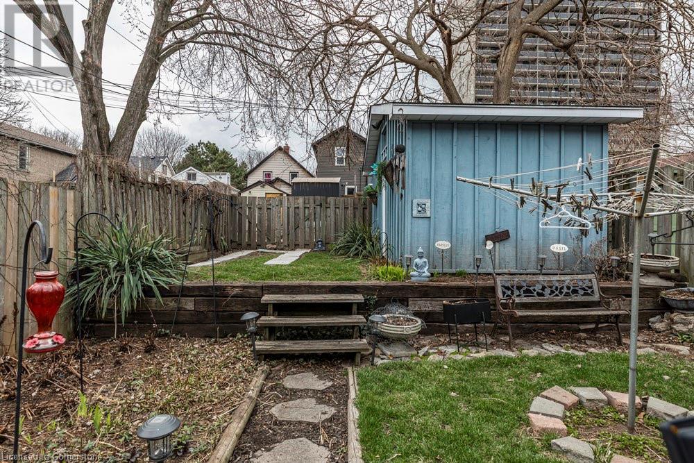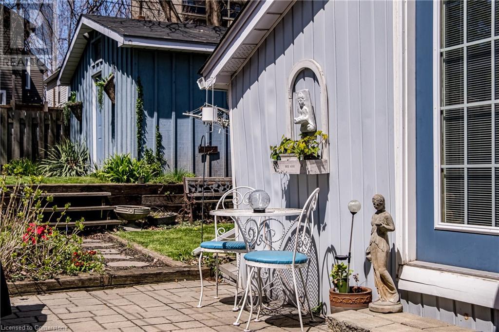 This charming 2-bedroom semi-detached home with hard to resist curb appeal, combines modern features blending perfectly with timeless character. Step into the bright and airy living room where sunlight pours through the lovely bay window highlighting the custom wall to wall built ins and tall ceilings. The spacious kitchen is a standout featuring plenty of counter space, a skylight for natural light, a long peninsula perfect for stools for casual dining and prep, sleek stainless steel built-in appliances. It flows effortlessly into the dining area creating a seamless space for gatherings and entertaining. The primary bedroom is a true retreat—once two separate rooms, now transformed into one spacious haven with wall-to-wall custom closets, oversized windows, and elegant crown molding for a touch of sophistication. The second bedroom with closet and the large window overlooking the backyard gardens. The bright modernized 4-piece bathroom features a stylish, low-maintenance tub and shower combination. Added conveniences include main floor laundry and a bonus den or office—perfect for working from home. Step out to the private patio with a gazebo and BBQ area, overlooks the beautifully landscaped and fenced backyard. A gardener's delight featuring tiered gardens and other patio sitting and relaxing areas. The striking blue shed with hydro makes for a great workshop, studio or extra storage. And rare private single-car parking space accessed from the rear alley. Located on a quiet, established street, this home is just steps from trails, mountain access and the unique cafes and boutiques of International Village. With easy access to public transit, parks, schools, the downtown GO station, entertainment hubs and the vibrant Corktown and James North districts! This Corktown treasure truly delivers on both convenience and character. (id:16766)