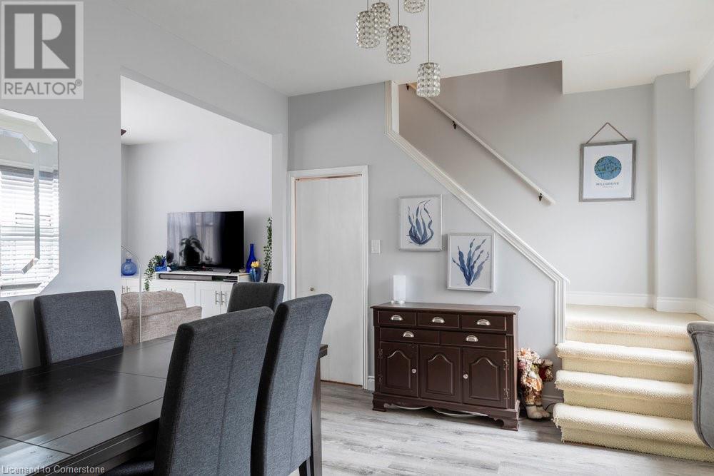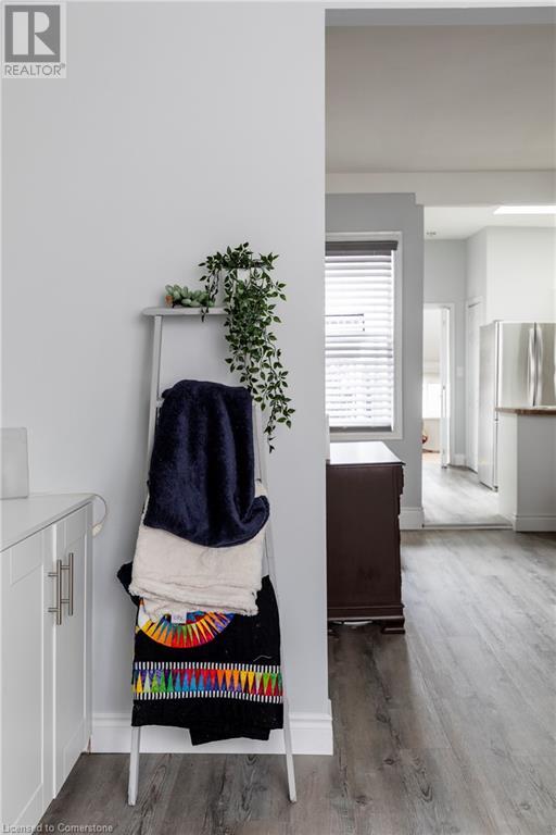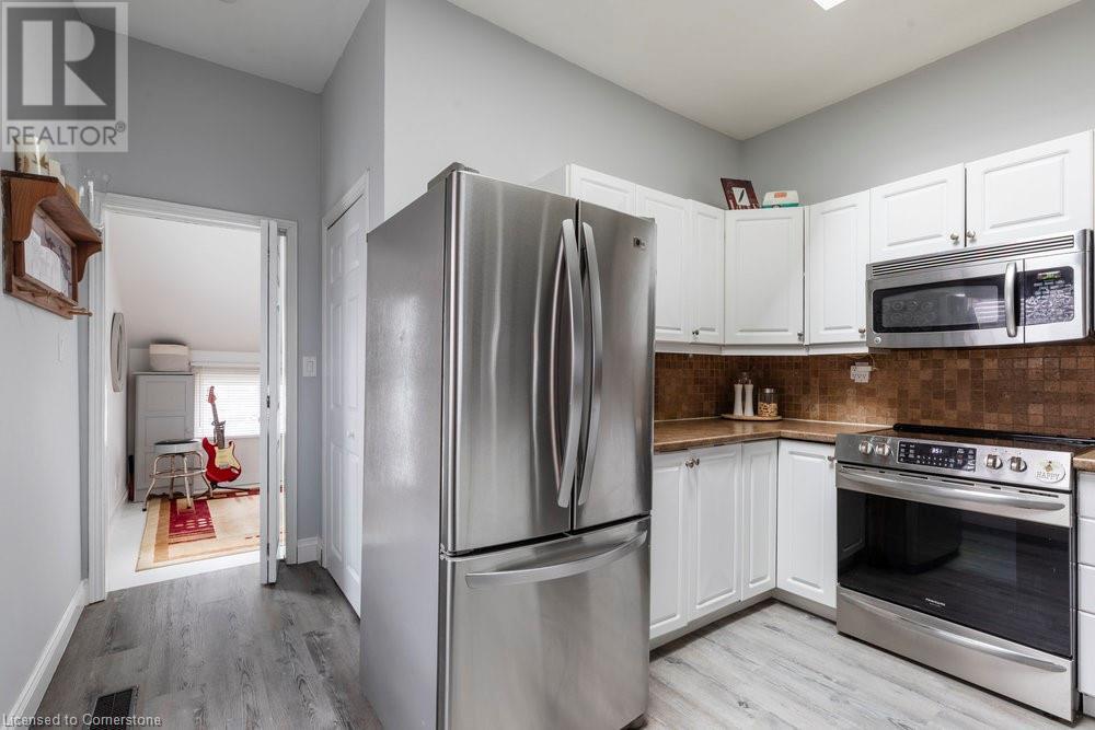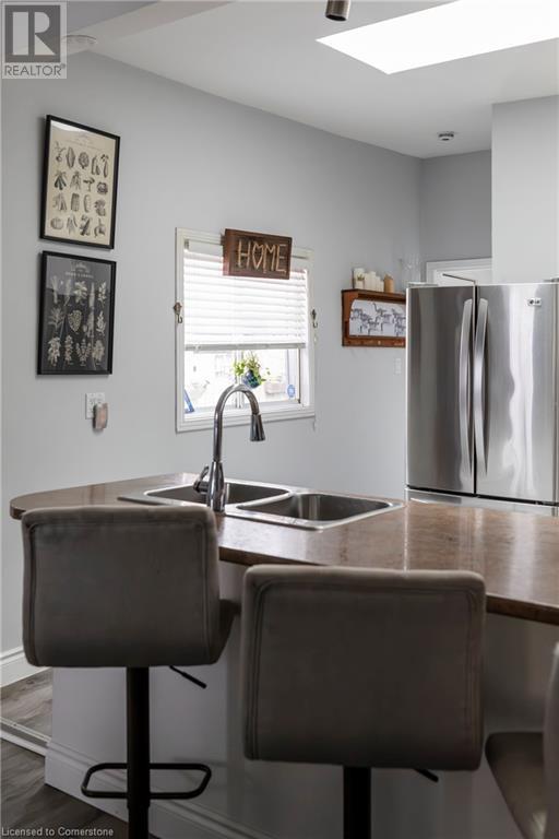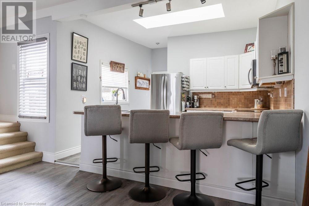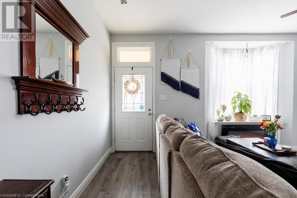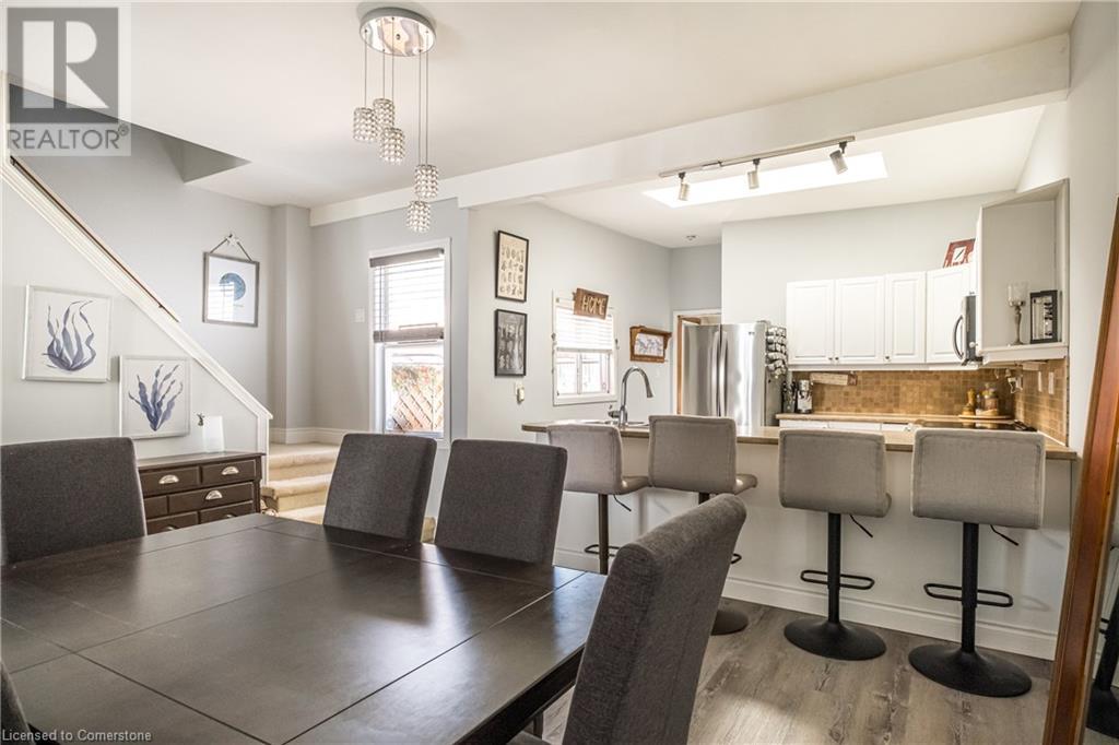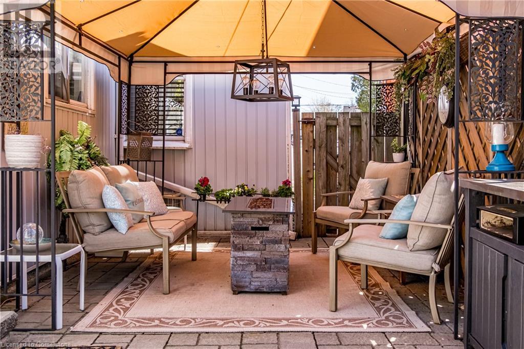 This charming 2-bedroom semi-detached home with hard to resist curb appeal, combines modern features blending perfectly with timeless character. Step into the bright and airy living room where sunlight pours through the lovely bay window highlighting the custom wall to wall built ins and tall ceilings. The spacious kitchen is a standout featuring plenty of counter space, a skylight for natural light, a long peninsula perfect for stools for casual dining and prep, sleek stainless steel built-in appliances. It flows effortlessly into the dining area creating a seamless space for gatherings and entertaining. The primary bedroom is a true retreat—once two separate rooms, now transformed into one spacious haven with wall-to-wall custom closets, oversized windows, and elegant crown molding for a touch of sophistication. The second bedroom with closet and the large window overlooking the backyard gardens. The bright modernized 4-piece bathroom features a stylish, low-maintenance tub and shower combination. Added conveniences include main floor laundry and a bonus den or office—perfect for working from home. Step out to the private patio with a gazebo and BBQ area, overlooks the beautifully landscaped and fenced backyard. A gardener's delight featuring tiered gardens and other patio sitting and relaxing areas. The striking blue shed with hydro makes for a great workshop, studio or extra storage. And rare private single-car parking space accessed from the rear alley. Located on a quiet, established street, this home is just steps from trails, mountain access and the unique cafes and boutiques of International Village. With easy access to public transit, parks, schools, the downtown GO station, entertainment hubs and the vibrant Corktown and James North districts! This Corktown treasure truly delivers on both convenience and character. (id:16766)