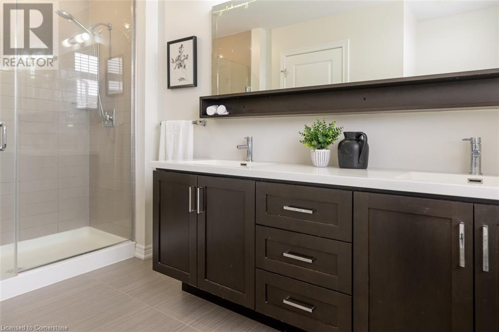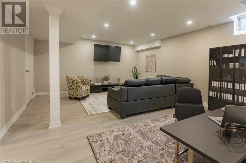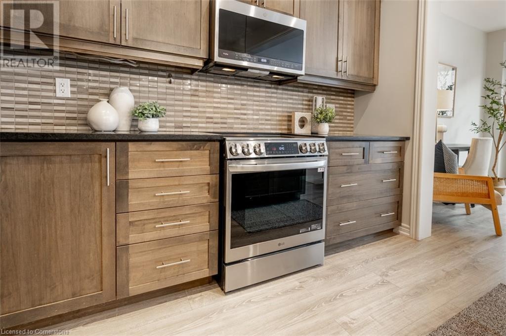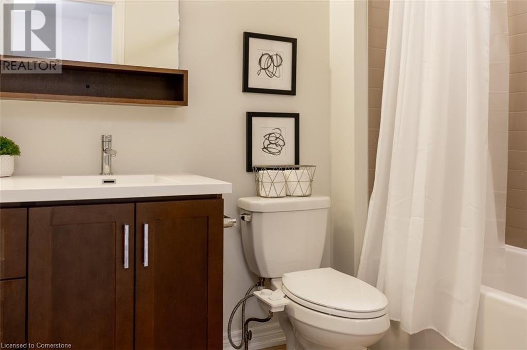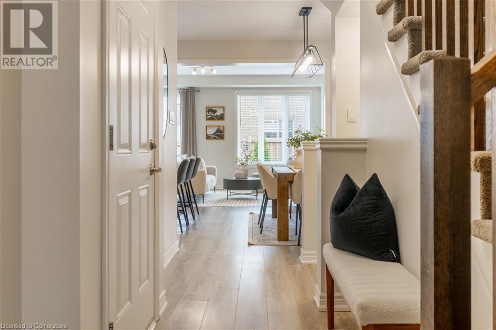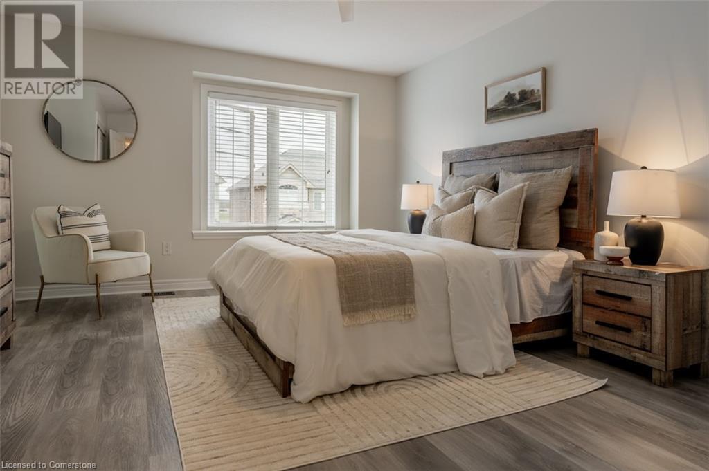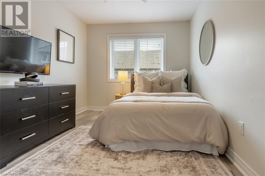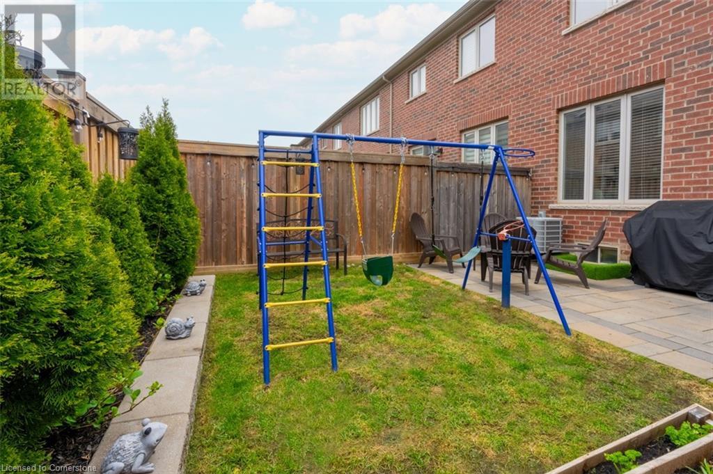 This beautifully maintained Branthaven-built townhome is tucked away in a small collection of premium homes in Milton’s family-focused Ford neighbourhood. From the moment you enter the tiled foyer, you’re welcomed by 9-foot ceilings and a warm, inviting layout. The heart of the home—the kitchen which features granite countertops, pot-and-pan drawers, tall upper cabinets, and extended breakfast bar—flows seamlessly into the spacious living and dining areas, ideal for family meals and weekend entertaining. Upstairs, three generous bedrooms include a bright primary suite with walk-in closet, a second double closet, and a spacious and relaxing ensuite with quartz counters and dual sinks. Enjoy the convenience of upper-level laundry and a fully finished basement complete with a large rec room, 3-piece bath, and wet bar—perfect for movie nights or guests. A fenced yard, covered porch, and nearby parks and schools make this the perfect place to call home. (id:16766)
