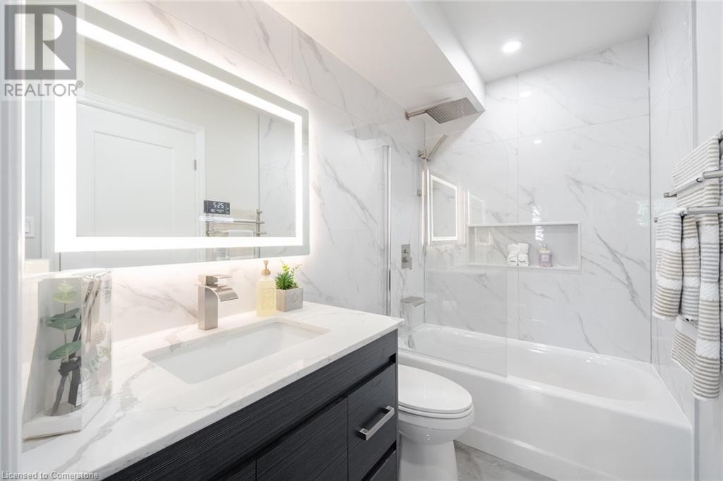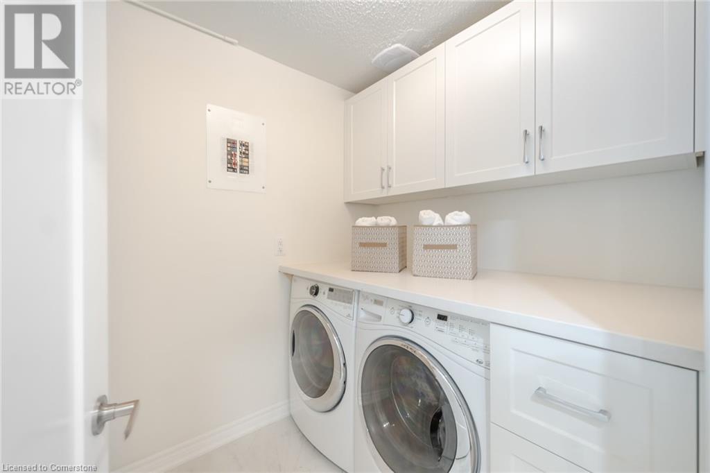 Welcome To This Beautifully Renovated 2-Bedroom Townhouse Condo Offering Comfort, Style, And Convenience All On One Level. Featuring A Spacious Open-Concept Layout With Brand New Flooring, Fresh Paint, Upgraded Trim, And New Baseboards Throughout. The Renovated Kitchen Is A Showstopper With Stainless Steel Appliances, Pot Lights, Custom Backsplash, And Modern Cabinetry. Enjoy The Convenience Of Ensuite Laundry With Built-In Cabinets And Front-Load Washer/Dryer. The Primary Bedroom Boasts A Walk-In Closet With Custom Built-In's, While The Second Bedroom Features A New Shaker-Style Closet Door And Updated Light Fixtures. The Renovated 4-Piece Bathroom Impresses With Floor-To-Ceiling Tile Work, Light Up Mirror and Glass Shower Shield. Additional Updates Include A New Heat Pump System (Cooling and Heating) For Year-Round Comfort. Step Outside To Scenic Walking Trails, Aquitaine Lake, And Enjoy Quick Access To The GO Train And Major Highways. This Home Offers The Perfect Blend Of Modern Living In A Serene, Connected Neighbourhood. (id:16766)