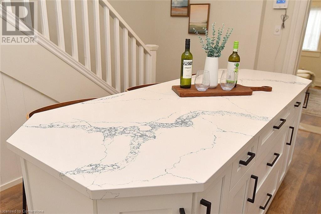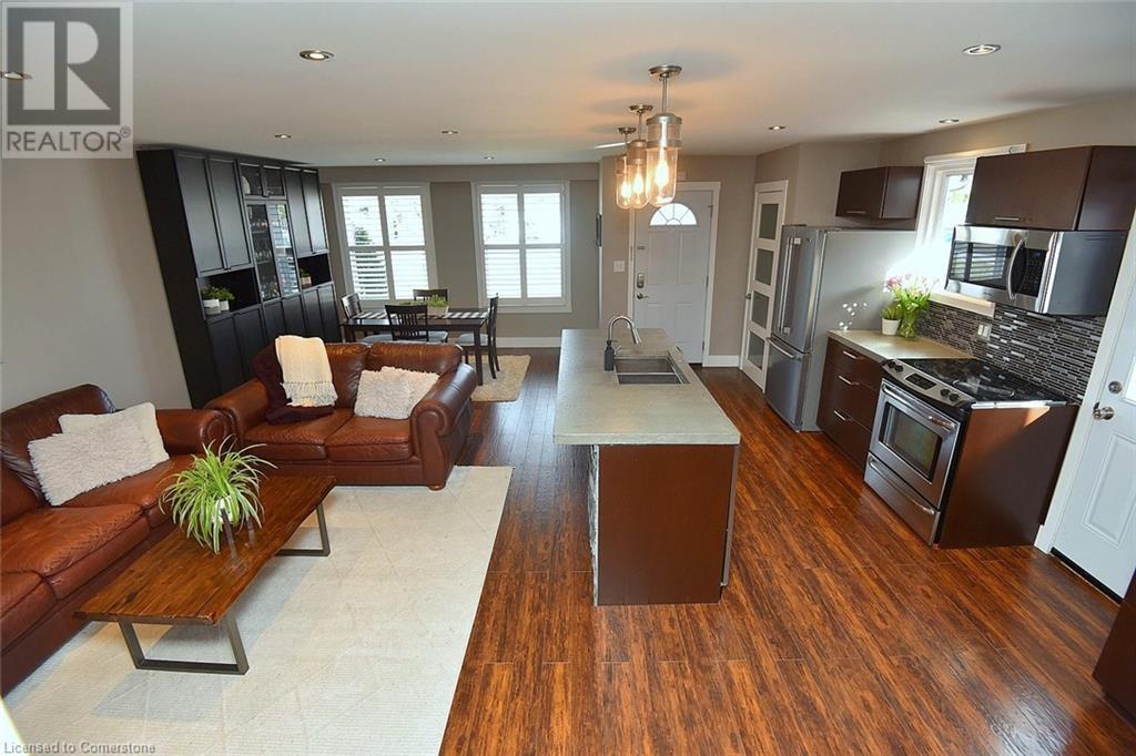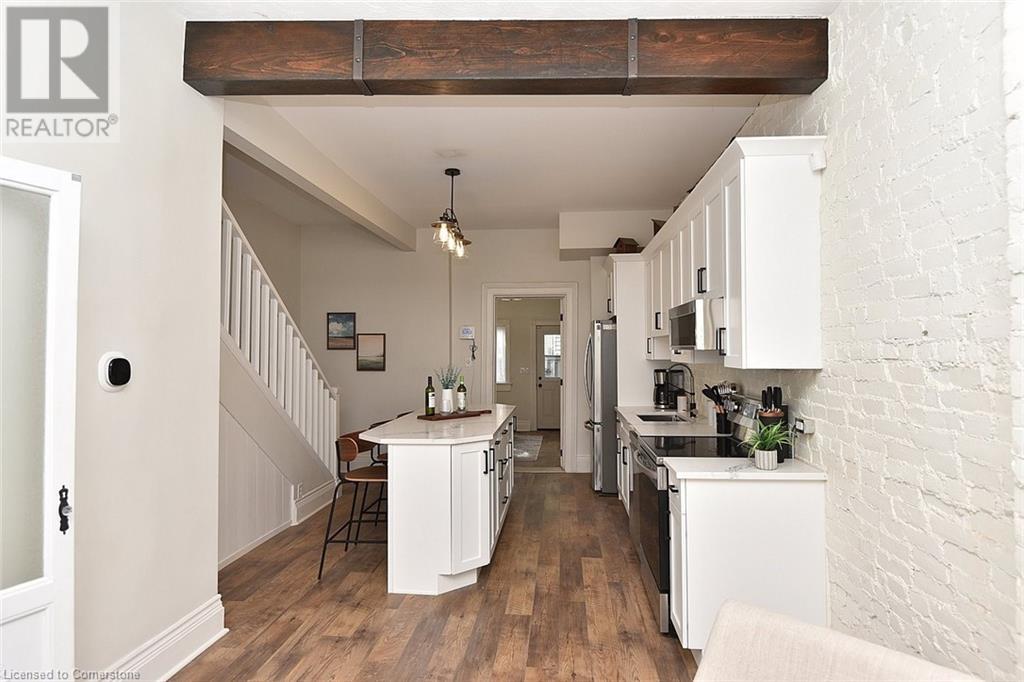 Downtown Hamilton Row/Townhome with gorgeous Modern Upgrades! Experience the best of downtown Hamilton in this beautifully renovated freehold semi, ideally situated close to all the local amenities. This home features 2 Spacious Bedrooms and a full bath with convenient Second-Floor Laundry, Completely Updated Interior with custom Magic windows upstairs(noise proof) and a new inviting front door, Open Concept Living & Dining that flows into an amazing chef’s kitchen, Massive Custom Granite Island perfect for entertaining, A cozy Family Room leading to a private backyard courtyard, Unfinished Basement with storage potential and ample street parking. Located just a short walk from downtown hotspots like Hess Village, Locke Street, and Fortinos, you’ll enjoy easy access to shopping, dining, and entertainment. On the main bus route and a short distance to Highway access. Great for commuters. Recent Updates Include, Metal main roof(2019), Eves w/leaf guard(2020), Central Air(2021), LG Appliances(2022), Luxury vinyl plank flooring(main floor 2020), New windows throughout (Upstairs Magic Windows w/ retractable blinds & screens 2021), New Electrical/Esa certified, Front door w/transom and back door(2020), Backyard deck & courtyard(2021), Laundry LG Washtower(2021), wall-to-wall closet in primary Bedroom(2020). Move in ready home. NOTE: 275 MAIN ST ATTACHED TO THE EAST IS AVAILABLE #40686031 (id:16766)