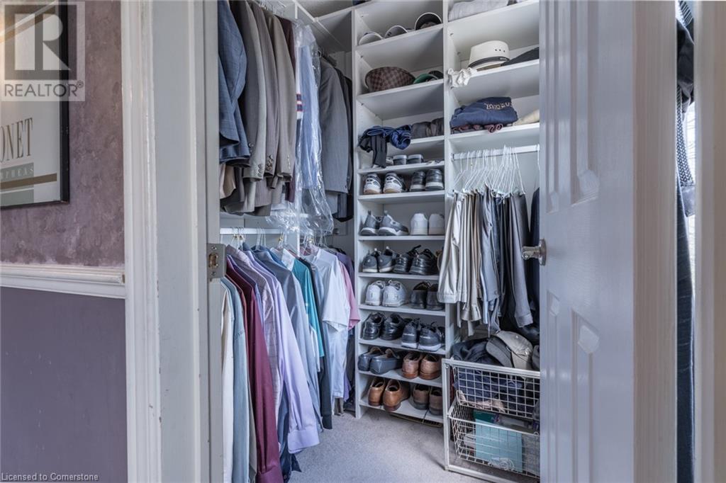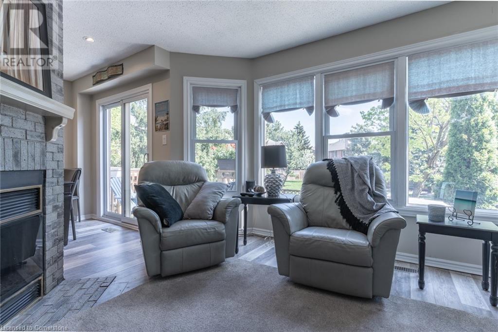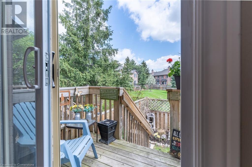 Offering a well-maintained 3+1 bedroom, 4 bathroom home nestled in Burlington’s desirable Headon Forest community. This peaceful complex offers a quiet and family-friendly atmosphere within walking distance of top-rated schools, public transit, shopping, and recreation, with easy access to GO Transit and major highways. Inside, the home features a modern eat-in kitchen featuring stainless steel appliances, quartz counters, and ample cabinet and pantry storage. Adjacent are the dining nook with mounted TV, and a second, larger dining area that opens out to the back deck. Outdoor living is a true highlight here. The fully fenced backyard backs onto a large open green space, which serves as an extended area for use. Manicured front and rear gardens are enhanced by a built-in lawn sprinkler system, a serene garden waterfall, and striking Japanese maples. The central living room, warmed by a wood-burning fireplace, invites relaxation and entertainment. Upstairs, the spacious primary bedroom includes a modernized walk-in closet with built-in organizers and a mirror cabinet, as well as a private ensuite bathroom featuring a glass shower with sleek tiles. Additional bedrooms are well-sized, and the four bathrooms throughout the home provide plenty of flexibility for families or guests. The lower level includes a fully finished rec room, the fourth bedroom, and a convenient 2pc bath. Additional features include an automatic garage door opener, single-car garage with driveway parking for a second vehicle, and an optional extra parking space for $80/month. Visitor parking is conveniently close by. Residents enjoy low condo fees, and never have to worry about the roof, windows, storm doors, garage door, driveway, fences, or lawn maintenance ever again! This move-in-ready home combines comfort, convenience, and charm in one of Burlington's most sought-after neighborhoods. (id:16766)