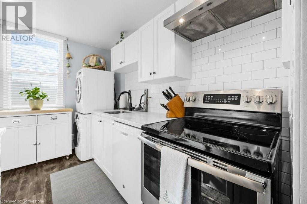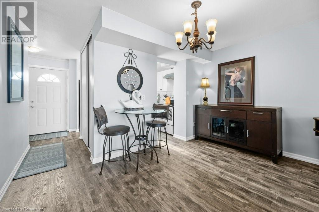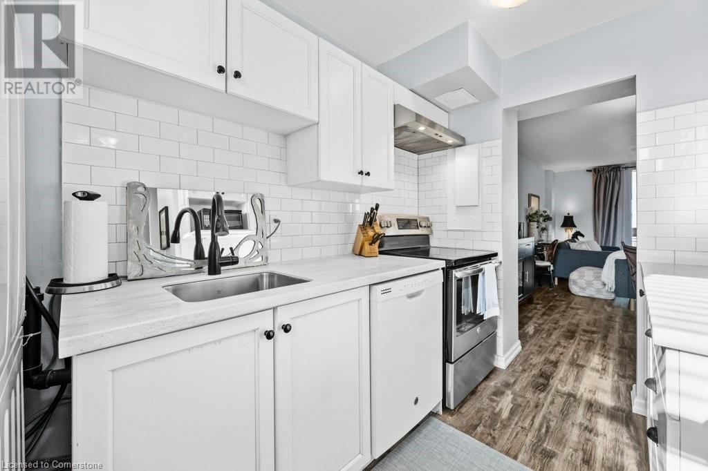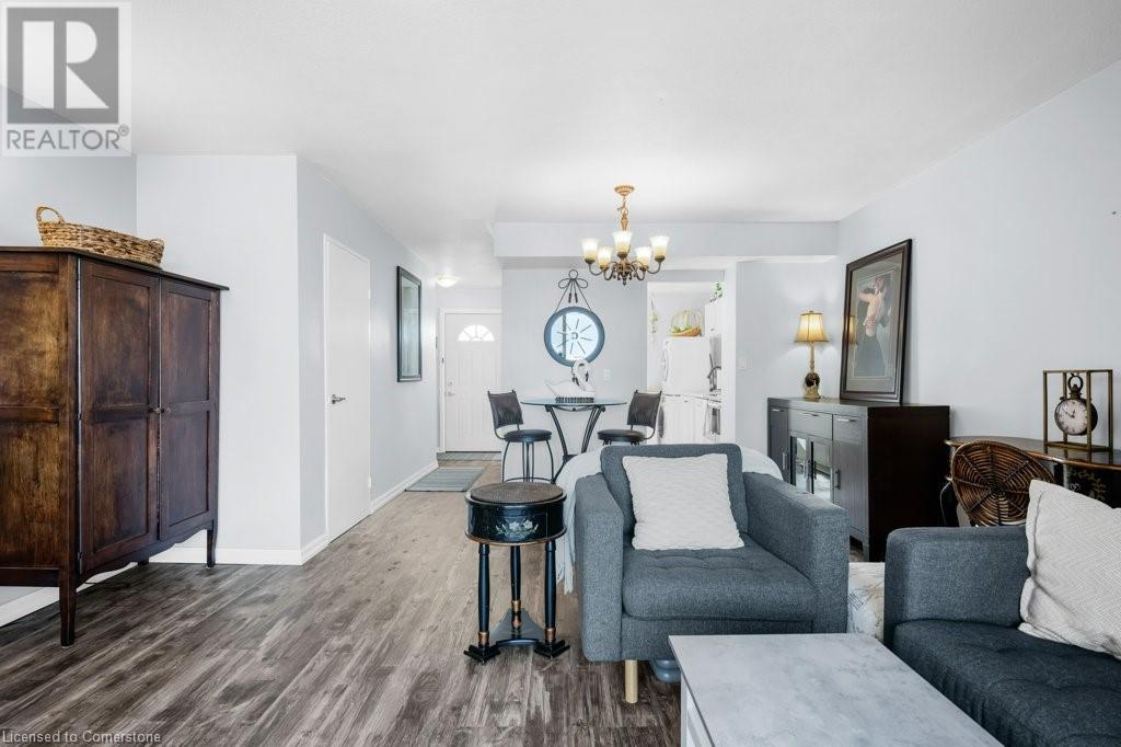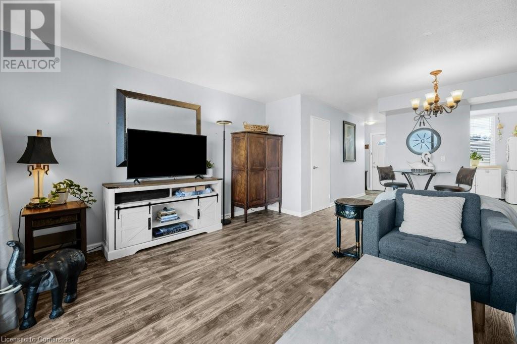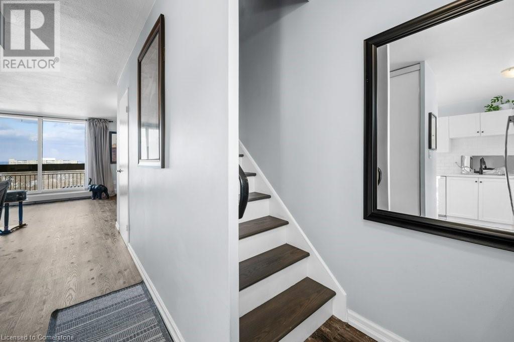 Welcome to Parkview Terrace – a unique building with exterior walkways and two storey units that feel just like a townhome! This 5th floor unit is conveniently located close to the elevator and is perfect for first time home buyers, families or downsizers. This spotless unit has been completely updated and shines with pride of ownership. The welcoming front entrance leads to a bright fully renovated Kitchen with caesarstone counters, Kohler faucet, and convenient in-suite laundry area. The open concept Living and Dining area features plenty of space and leads to a private balcony finished with modern interlocking deck tiles. Enjoy stunning views of the lake, sunset, the escarpment, and even the Toronto skyline! The 2nd floor features 3 spacious Bedrooms and updated sparkling clean 4 piece Bathroom with Kohler fixtures. The unit features vinyl plank flooring throughout with an additional storage area located under the stairs. Included with the unit is exclusive use of one underground parking spot and one spacious storage locker. Building amenities include a party room, an additional onsite laundry facility, a community garden, and a children’s playground all located on beautifully maintained grounds. This pet friendly building is conveniently located close to schools, parks, and shopping, with easy access to Red Hill and the Linc. This stunning unit is ready to move in! (id:16766)
