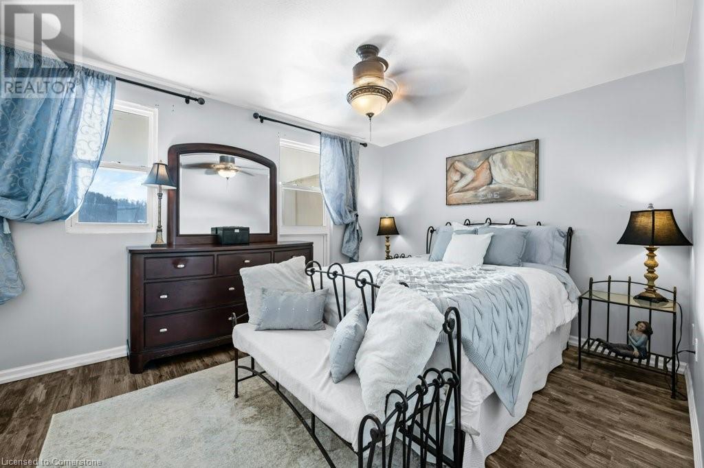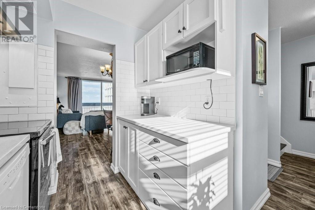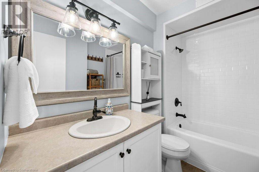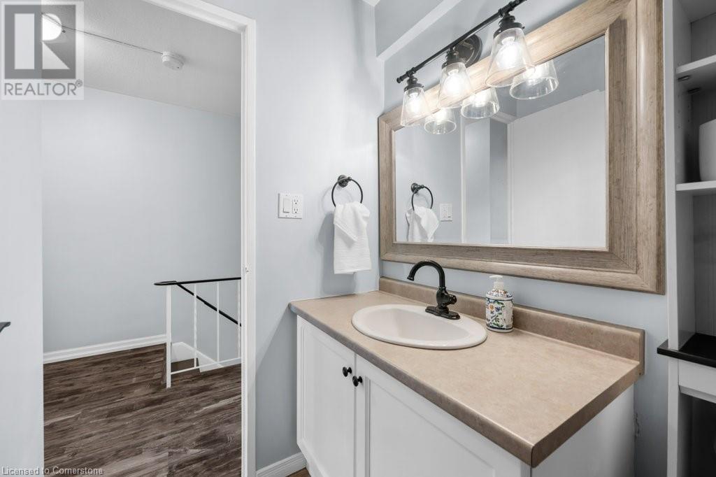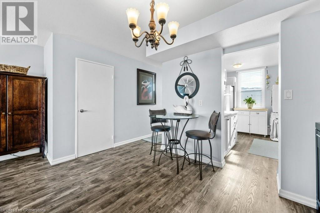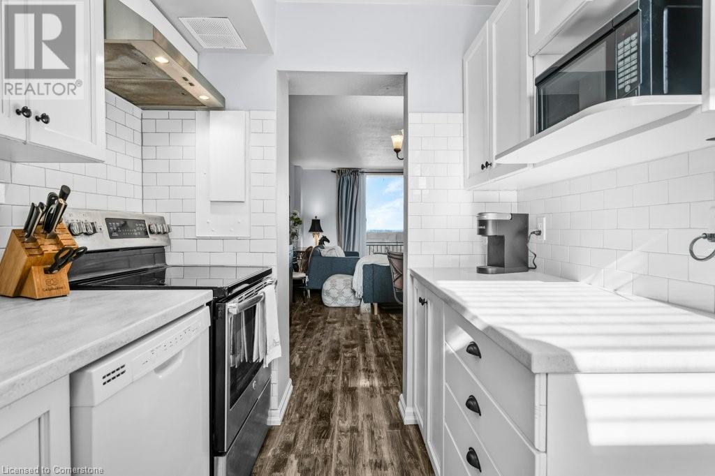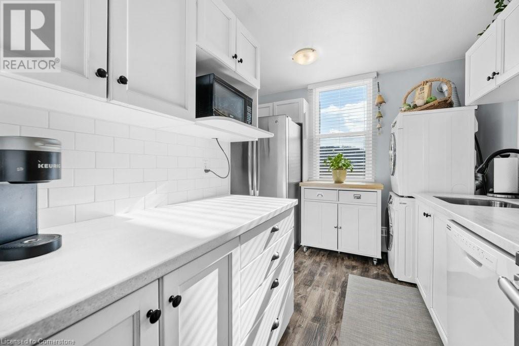 Welcome to Parkview Terrace – a unique building with exterior walkways and two storey units that feel just like a townhome! This 5th floor unit is conveniently located close to the elevator and is perfect for first time home buyers, families or downsizers. This spotless unit has been completely updated and shines with pride of ownership. The welcoming front entrance leads to a bright fully renovated Kitchen with caesarstone counters, Kohler faucet, and convenient in-suite laundry area. The open concept Living and Dining area features plenty of space and leads to a private balcony finished with modern interlocking deck tiles. Enjoy stunning views of the lake, sunset, the escarpment, and even the Toronto skyline! The 2nd floor features 3 spacious Bedrooms and updated sparkling clean 4 piece Bathroom with Kohler fixtures. The unit features vinyl plank flooring throughout with an additional storage area located under the stairs. Included with the unit is exclusive use of one underground parking spot and one spacious storage locker. Building amenities include a party room, an additional onsite laundry facility, a community garden, and a children’s playground all located on beautifully maintained grounds. This pet friendly building is conveniently located close to schools, parks, and shopping, with easy access to Red Hill and the Linc. This stunning unit is ready to move in! (id:16766)