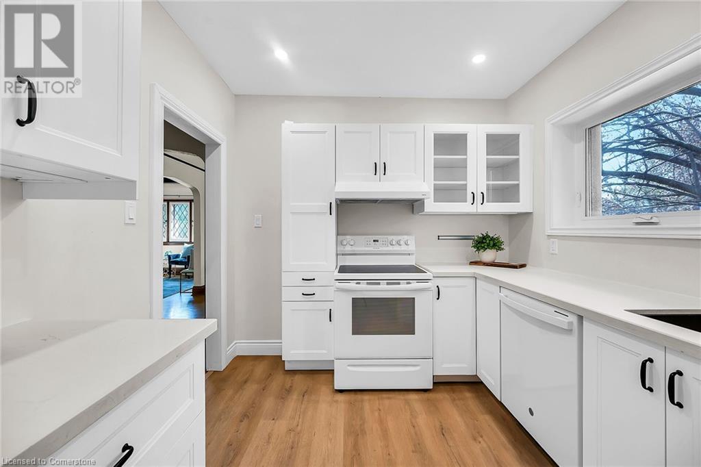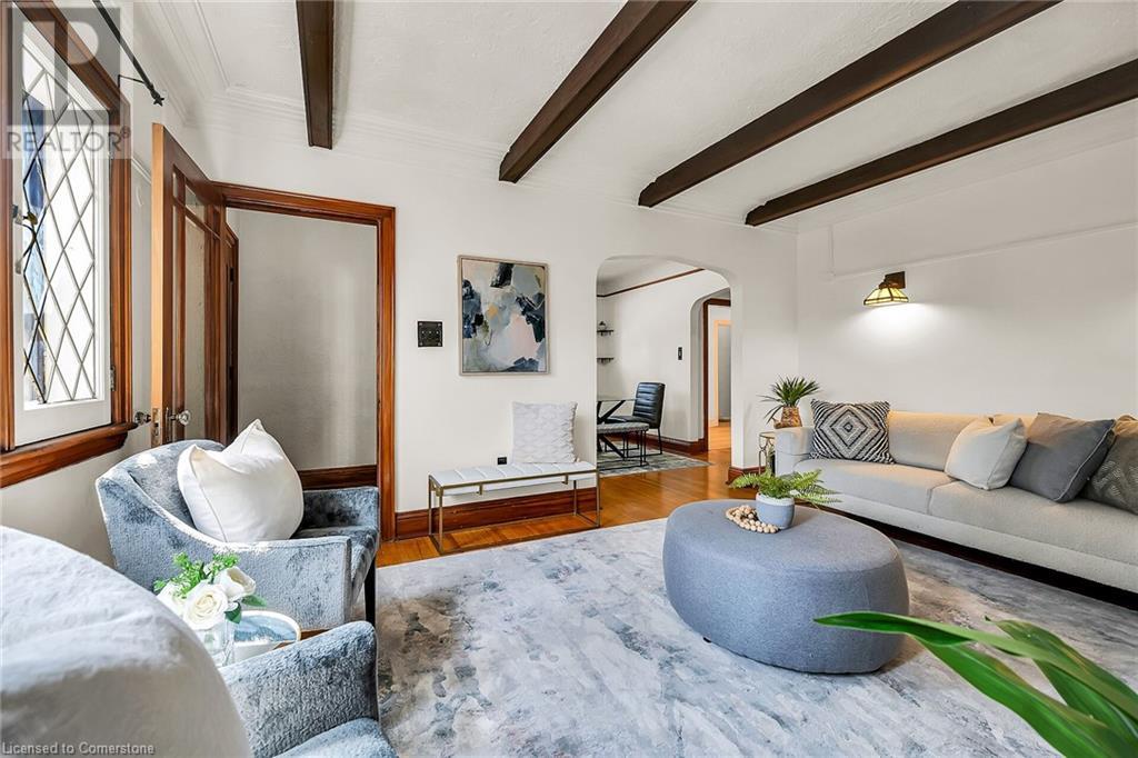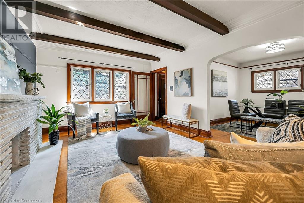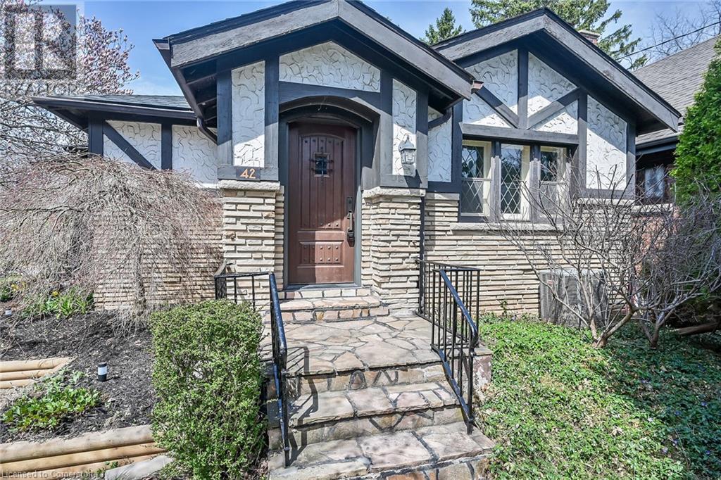 Welcome to 42 Newton Avenue - a beautifully presented bungalow located in prime Westdale neighborhood enjoying close proximity to Hospitals, MacMaster University, affiliated learning/art centers, parks, eclectic shops, trendy bistros/eateries, city transit, quick 403 access, mins to Hamilton’s downtown business core in-route to Dundas & eco-friendly Cootes Paradise sanctuary. Includes well maintained one level bungalow showcasing classic mid 30-40’s architecture the area is famous for. Positioned handsomely on mature, lushly landscaped corner lot, this stately home reflects glimpses of the Tudor era introducing 977sf of spacious main floor living space & 977sf lower lever - accented with gleaming period hardwood flooring, original leaded glass windows & exposed beamed ceilings highlighting the timeless décor. Follow quaint flag stone walk-way to inviting front entrance where comfortable living room with decorative fireplace provides an intimate greeting - design continues past formal dining room to recently installed new kitchen-2021 sporting chic white cabinetry & quartz countertops - segues past 3 generous bedrooms completed with 4pc bath & bright 3-seasons west-side sunroom. Intriguing lower level features a medieval ambience includes family room adorned with ornate fireplace & tin ceilings - onto versatile multi-purpose room includes Tudor style feature walls - incorporating laundry station. Convenient 3pc bath, separate shower, cedar lined closet, utility room & multiple storage rooms ensure all space footage is utilized. Notable extras - n/g furnace, AC, 100 amp hydro *breakers*, garden shed & handy side driveway off Barclay Street. “Yesteryear’s Charm & Character†- redefined! (id:16766)