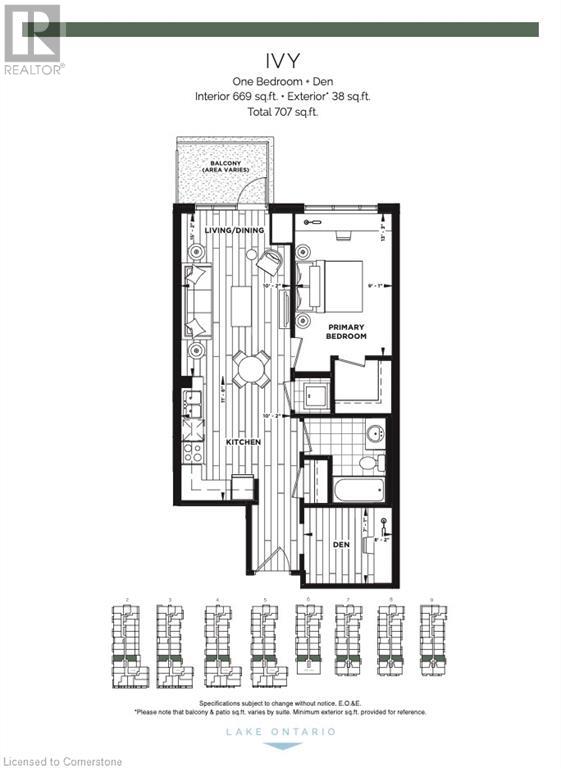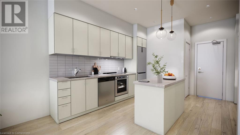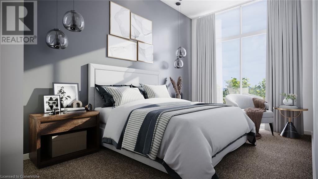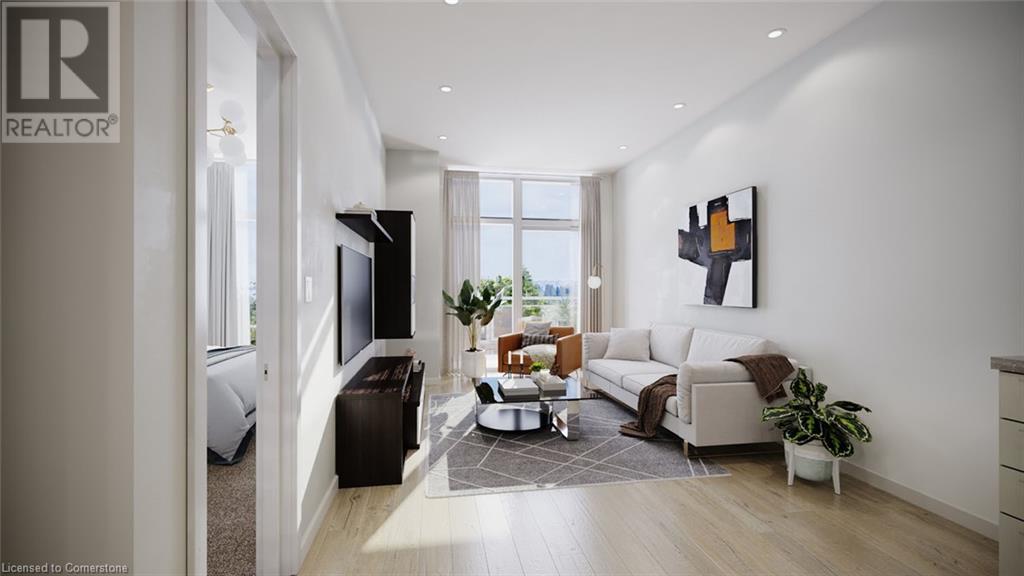 Welcome to the Ivy floorplan at Muse Lakeview Condominiums in Stoney Creek—Located on the 6th floor, a modern 1-bedroom + den, 1-bathroom suite offering 707 sq. ft. of stylish living space plus a 38 sq. ft. private balcony. This upgraded unit features 9’ ceilings, luxury vinyl plank flooring throughout the living room, kitchen, and primary bedroom, quartz countertops in both the kitchen and bathroom, a 7-piece stainless steel appliance package, upgraded 100 cm upper cabinets in the kitchen, and convenient in-suite laundry. The primary bedroom includes a walk-in closet, and the unit comes complete with 1 underground parking space and 1 storage locker. Residents will enjoy an exceptional lifestyle with access to Muse’s art-inspired amenities, including a 6th-floor BBQ terrace, chef’s kitchen lounge, art studio, media room, pet spa, and more. Smart home features such as app-based climate control, digital building access, energy monitoring, and security elevate the living experience. Located just steps from the upcoming GO Station, Confederation Park, Van Wagners Beach, trails, shopping, dining, and major highways, this is a rare opportunity to own in one of Stoney Creek’s most sought-after developments. (id:16766)