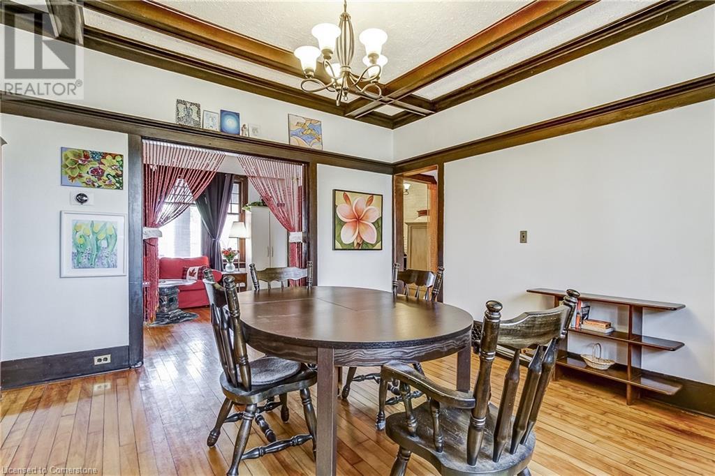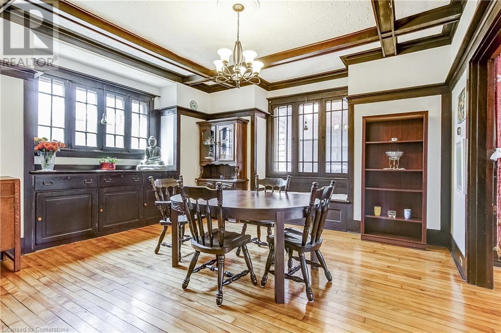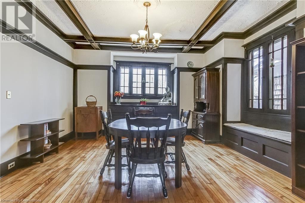 Full of charm, quirks, and character, this Kirkendall cutie is anything but cookie-cutter. With three bedrooms, original floors, and rooms that catch light in curious ways, this home offers more than square footage; it offers inspiration. The large welcoming foyer sets the tone for the whimsical surprises that await inside. The spacious main floor has a great flow—ideal for entertaining or just spending some quiet time with your favourite people. You’ll love the living and dining rooms, decorative beamed ceilings, and vintage built-ins that add warmth and personality. The kitchen may whisper for updates, but it sings with potential. Upstairs, the primary bedroom features a sweet little reading nook, perfect for journaling, daydreaming, or losing yourself in a good book. Decent sized closets in the bedrooms. The basement is high, tidy and usable. The backyard is something out of a city dweller’s dream: unexpectedly private. A secluded space with no rear neighbours. It presents an excellent opportunity to create an outdoor private oasis, or maybe you envision creating the perfect backdrop for your annuals or vegetable garden. Yes, this house asks you to dream a little. To sketch plans in notebooks and imagine what could be. This is your chance to own a home with heart—and make it all your own. Highly walkable location! This wonderful spot will appeal to you if you enjoy walking, cycling or utilize public transit, it’s so handy to the 403, commuting will be easy! Convenient proximity to McMaster Hospital/University. Surrounded by the arts, culture, recreation of downtown Hamilton. You will be within walking distance to Locke Street, James Street North, Hess Village, the Farmer’s Market, First Ontario Concert Hall, the Art Gallery of Hamilton, historic Dundurn Castle, parks, a wide variety of cuisine, fine dining, shopping and West Harbour GO. (id:16766)