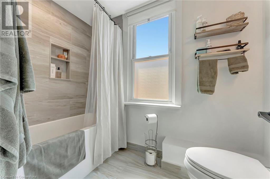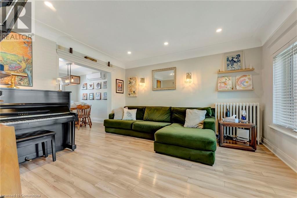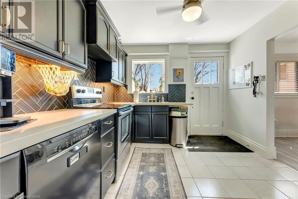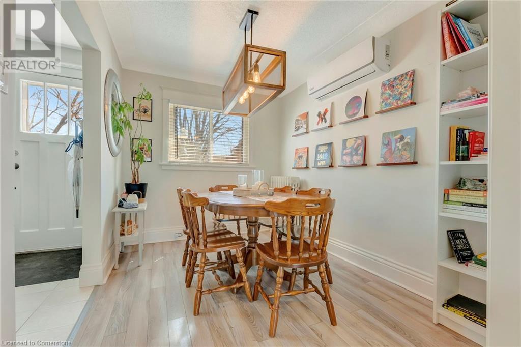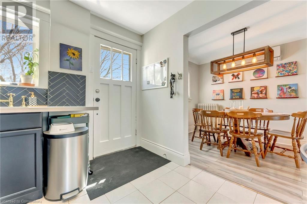 Situated in Hamilton's sought-after Eastmount neighbourhood, 53 East 21st Street offers a beautifully renovated 1.5-story home with 2 bedrooms, 1 full bath, and a convenient half bath in the partially finished basement. The open concept living and dining area is bright and inviting, featuring upgraded light fixtures, pot lights, and elegant wall sconces that create a warm and welcoming atmosphere. The recently renovated kitchen is a standout, with custom backsplash, quartz countertops, a new dishwasher, under-cabinet lighting and kitchen window. Additional upgrades include new electrical outlets with USB ports and an extended countertop, perfect for both cooking and entertaining. The upstairs features premium waterproof carpeting, and an added closet in the hallway for extra storage space. The home has been professionally painted throughout, and the bathroom has been completely updated with a new tub, tile, and toilet. Other notable improvements include a new washer, as well as new sod and a concrete walkway in the backyard, along with newly installed concrete stairs leading to the basement door. For added convenience and peace of mind, the property comes with a lifetime guarantee on eavestrough covers. Ductless air conditioning was installed in 2023. The fenced-in yard offers privacy and access to a detached garage, with alley parking for one vehicle. This move-in-ready home combines modern updates with timeless charm, making it the perfect place to call your own. (id:16766)