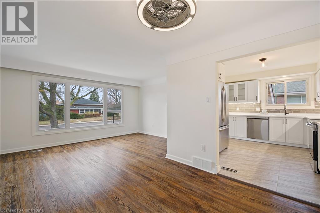 Welcome home to this charming, beautifully renovated 3+1-bedroom, 2.5-bathroom single-family detached bungalow located in the desirable neighbourhood of Sunninghill on East Hamilton Mountain. This fully renovated house includes new kitchen, bathrooms, interior doors, hardware, lighting and fresh paint throughout. The main level features a bright living room with original hardwood floors and elegant crown moulding along with large windows overlooking the quiet street. Next you will find a brand-new kitchen with stainless steel appliances, quartz countertops, contemporary backsplash and a large pantry for optimal storage. The spacious kitchen flows into separate dining room that overlooks living room making it ideal for family gatherings. Down the hall there is a fully renovated 4-piece bathroom with modern touches and 3 bedrooms with new mirrored closet doors. Lastly, a side entrance off the main level provides easy access to your backyard that offers open green space, a storage shed and a patio area ready for your outdoor furniture. Lower level offers a bright, cozy den with new pot-lights, a large modern 3-piece bathroom, and an over-sized bedroom with egress windows and a walk-in closet. For added comfort and warmth, lower level has been finished with new high-quality carpet for your family and guests to enjoy. It also hosts an additional 2-piece bathroom alongside a laundry tub, washer/dryer, and a utility room with ample space for storage; there is also a crawl space under stairs that can be used for storage. House is currently designed for single-family use but there is potential for basement apartment as there is a separate entrance from the basement to the garage and ample unfinished space in the basement for a new kitchen. Lastly, this property is located within walking distance to parks, schools, public transit, grocery stores and restaurants, and only a short drive to major highways. It is a gem that you should come see for yourself. (id:16766)