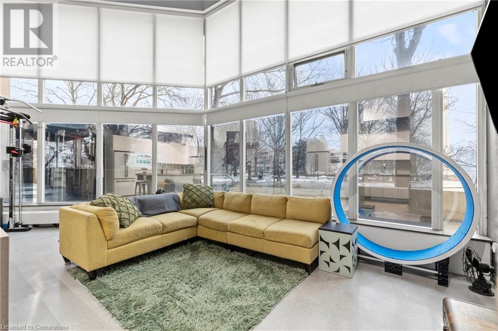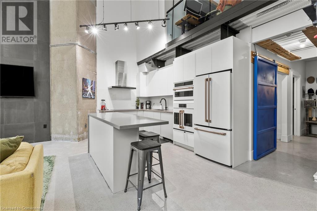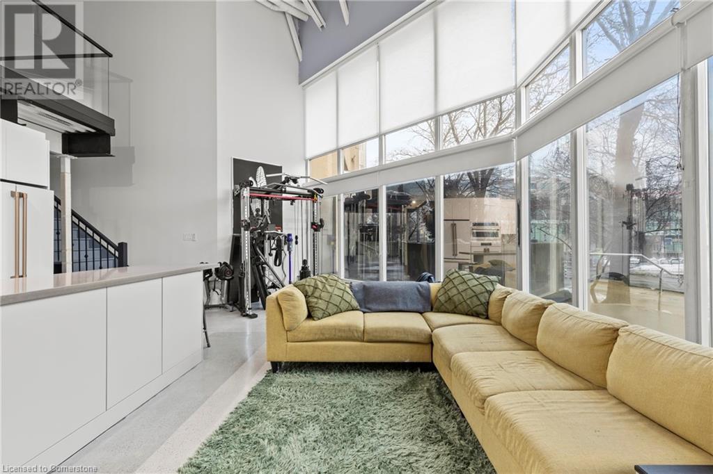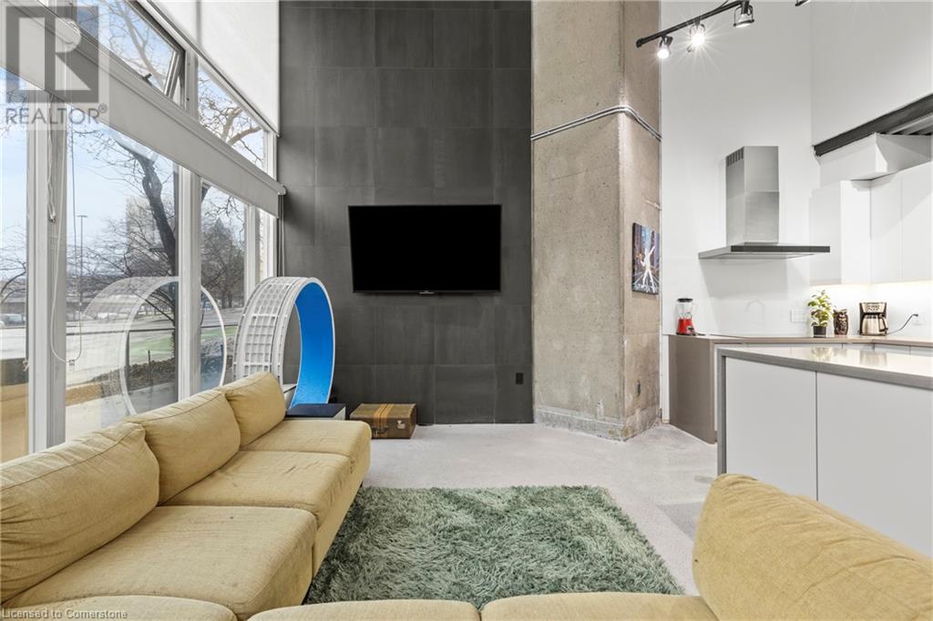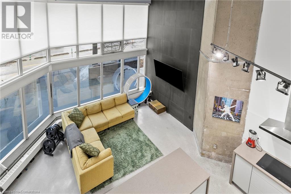 A Truly Unique Loft Experience! Originally a communications building, The Core Lofts were transformed in 2005 into one-of-a-kind residences. This stunning two-story unit retains some of the best industrial features, with soaring 20+ ft ceilings, polished concrete floors, and exposed beams that define its character. Floor-to-ceiling east-facing windows flood the space with natural light, offering breathtaking views of City Hall's green space and morning sunrises. The private second-floor master suite overlooks the living area and includes a walk-in closet and 3-piece ensuite. The main floor’s open-concept design is perfect for entertaining, featuring a second bedroom, 3-piece bathroom, and a sleek kitchen with granite countertops. Over $100,000 in upgrades! Renovated in 2023 Additional highlights include: Radiant heating (with optional forced air for extra warmth) Private underground parking—no elevators needed! Second-floor locker for extra storage Key fob access to the exercise room, party room, and rooftop terrace with stunning views of downtown, the escarpment, and the waterfront Just minutes from Nations Market, the Art Gallery, public transit, hospitals, the Bayfront, and more—this is urban living at its finest! (id:16766)