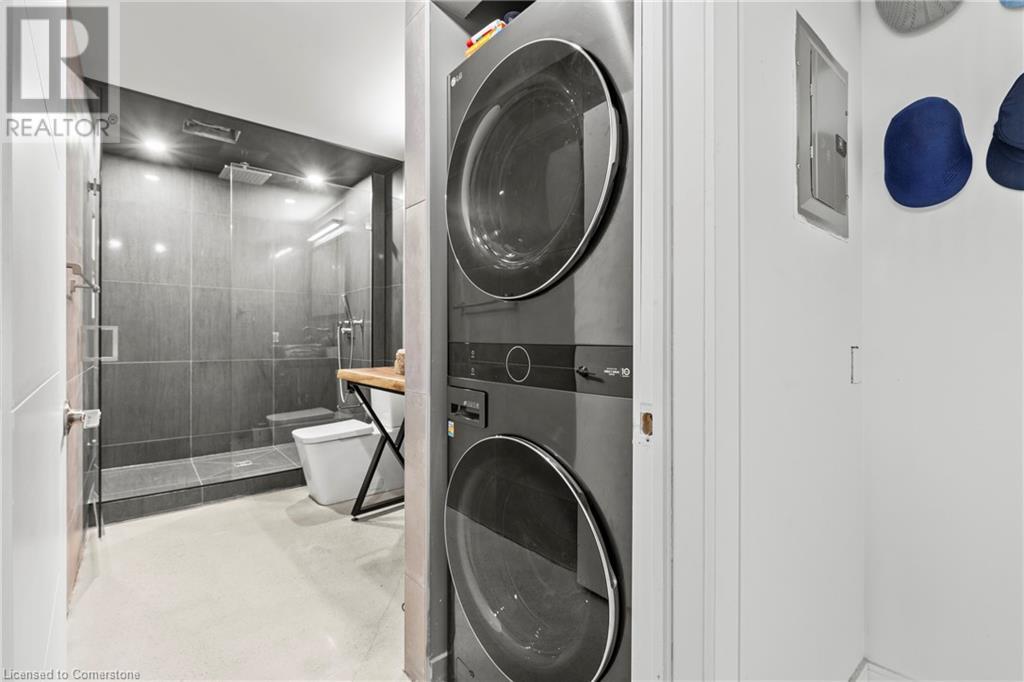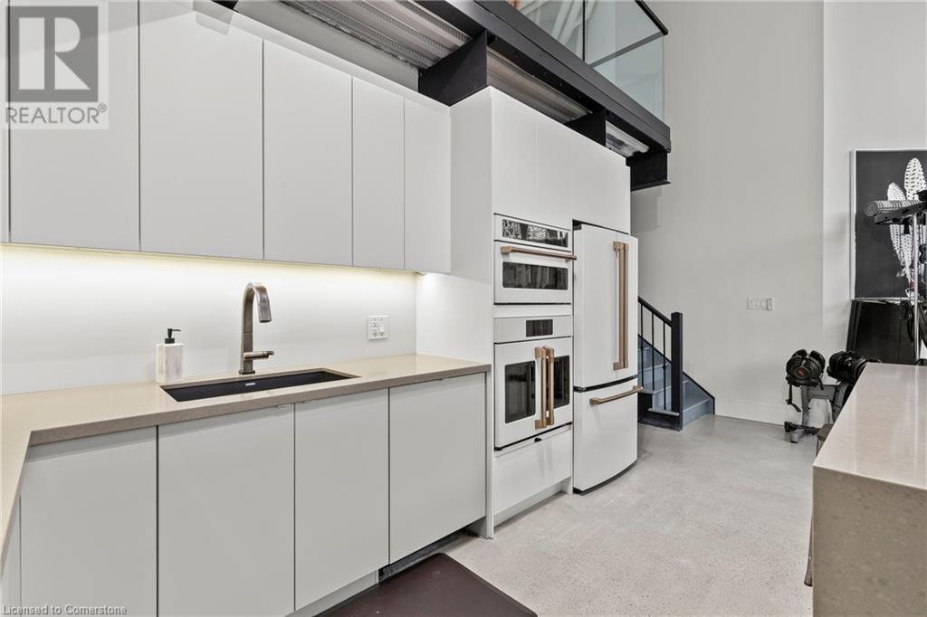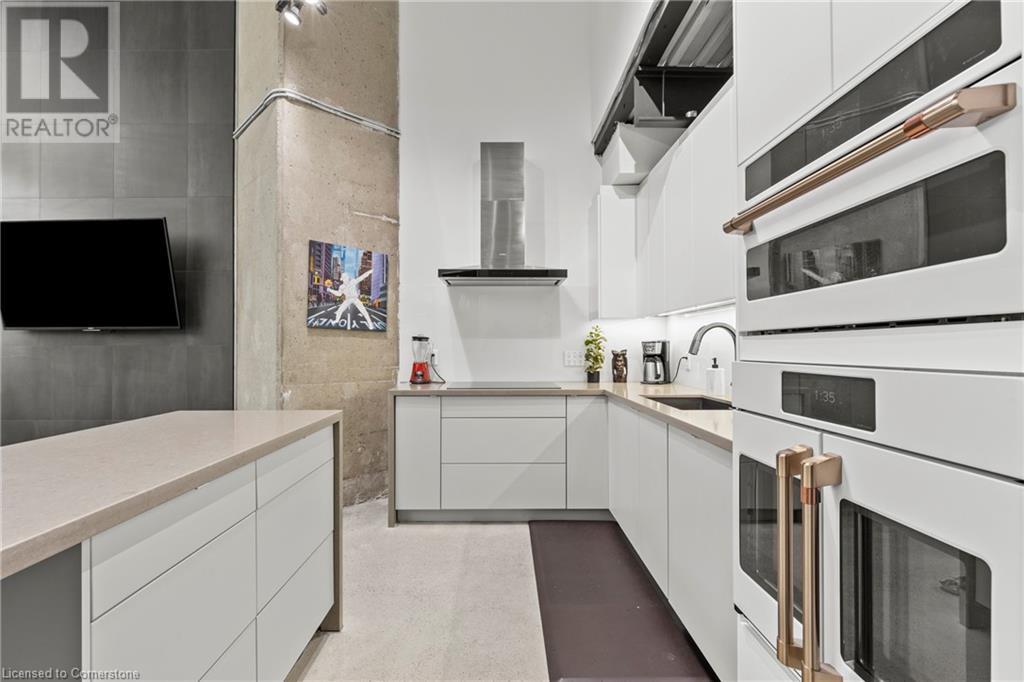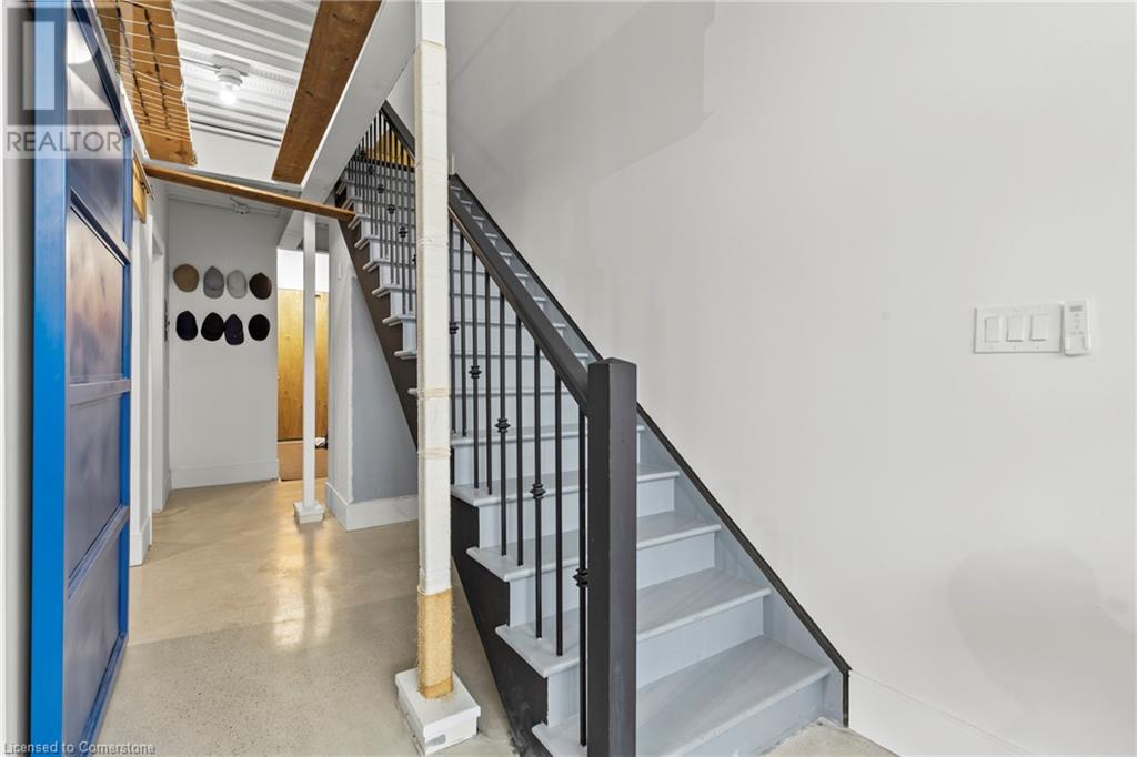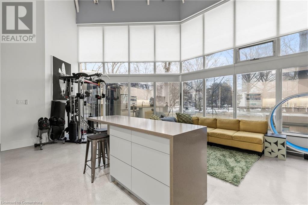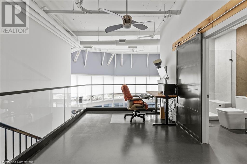 A Truly Unique Loft Experience! Originally a communications building, The Core Lofts were transformed in 2005 into one-of-a-kind residences. This stunning two-story unit retains some of the best industrial features, with soaring 20+ ft ceilings, polished concrete floors, and exposed beams that define its character. Floor-to-ceiling east-facing windows flood the space with natural light, offering breathtaking views of City Hall's green space and morning sunrises. The private second-floor master suite overlooks the living area and includes a walk-in closet and 3-piece ensuite. The main floor’s open-concept design is perfect for entertaining, featuring a second bedroom, 3-piece bathroom, and a sleek kitchen with granite countertops. Over $100,000 in upgrades! Renovated in 2023 Additional highlights include: Radiant heating (with optional forced air for extra warmth) Private underground parking—no elevators needed! Second-floor locker for extra storage Key fob access to the exercise room, party room, and rooftop terrace with stunning views of downtown, the escarpment, and the waterfront Just minutes from Nations Market, the Art Gallery, public transit, hospitals, the Bayfront, and more—this is urban living at its finest! (id:16766)