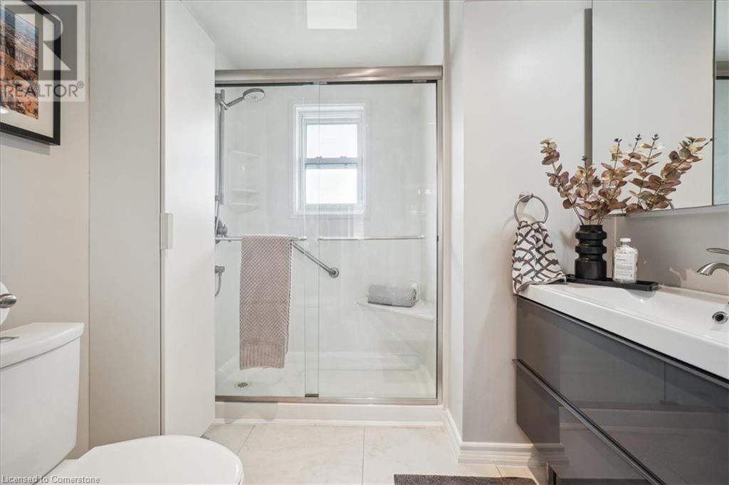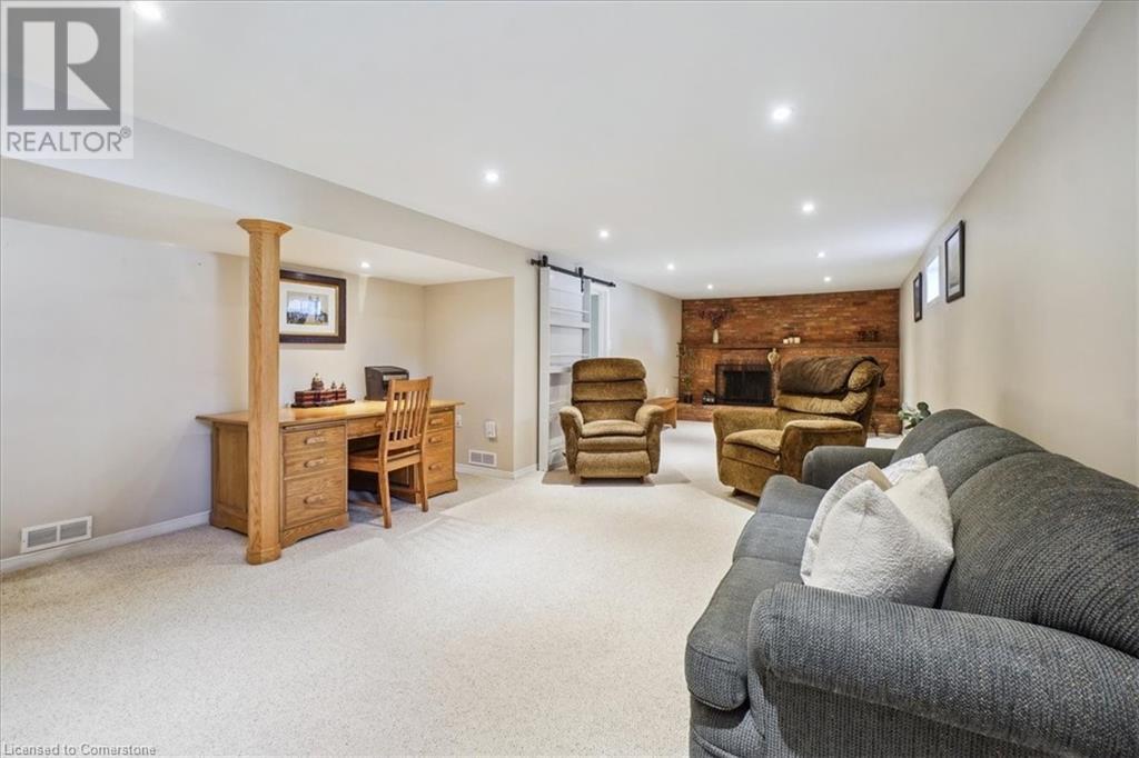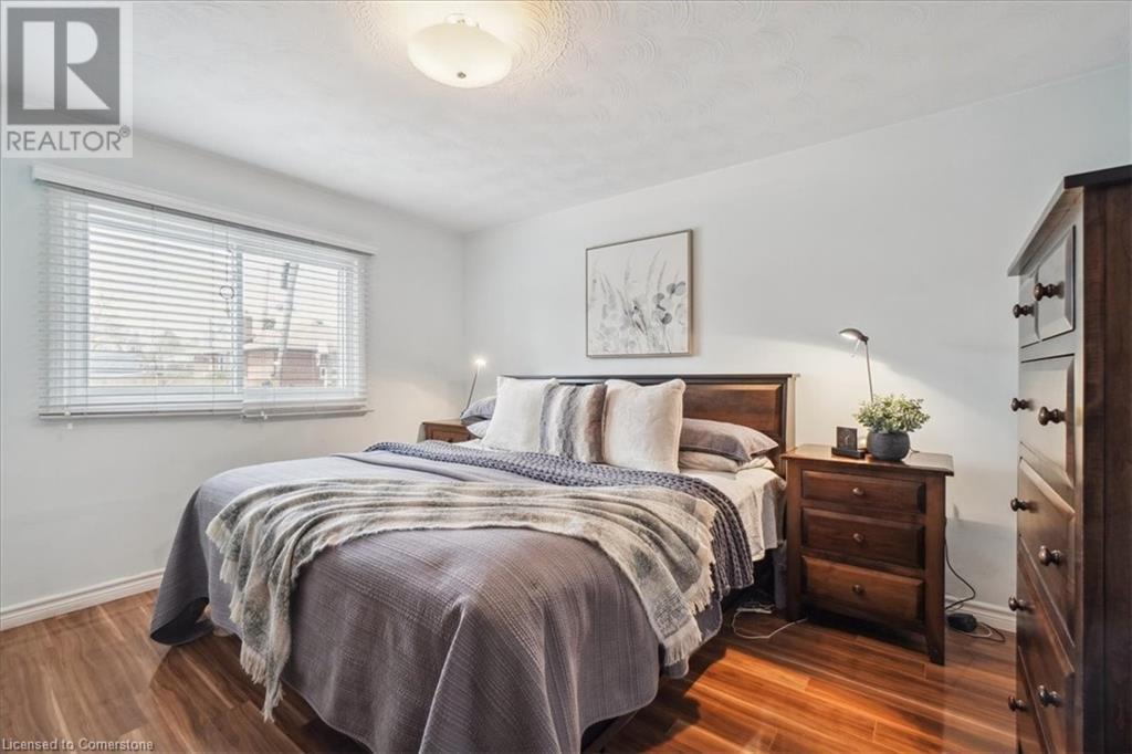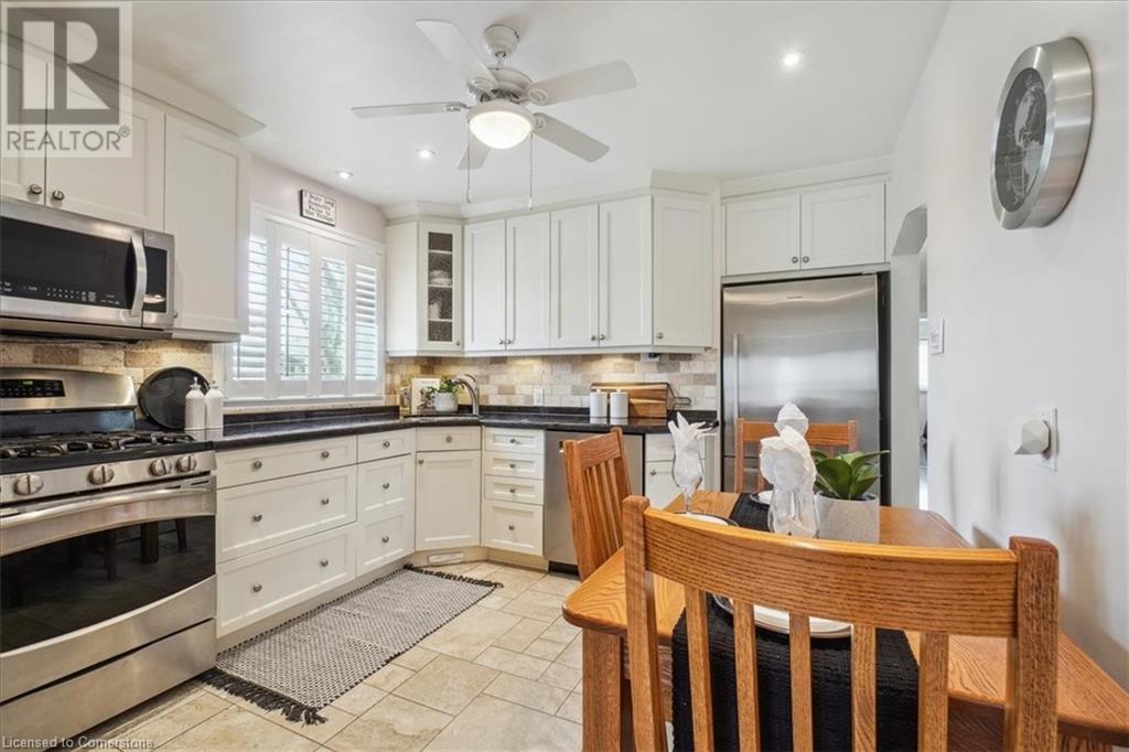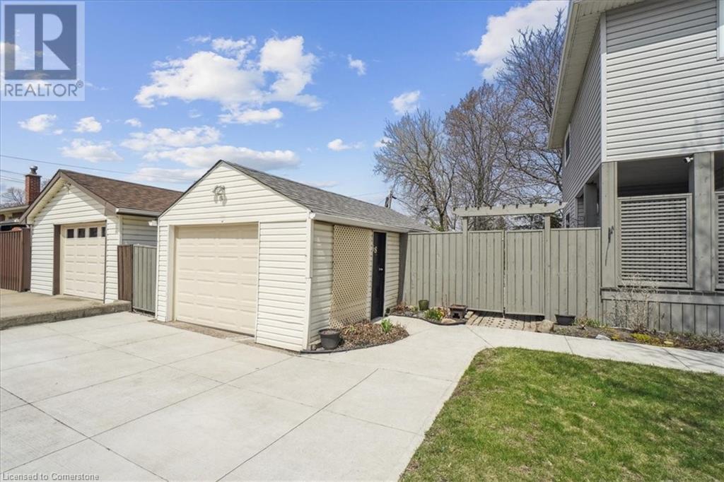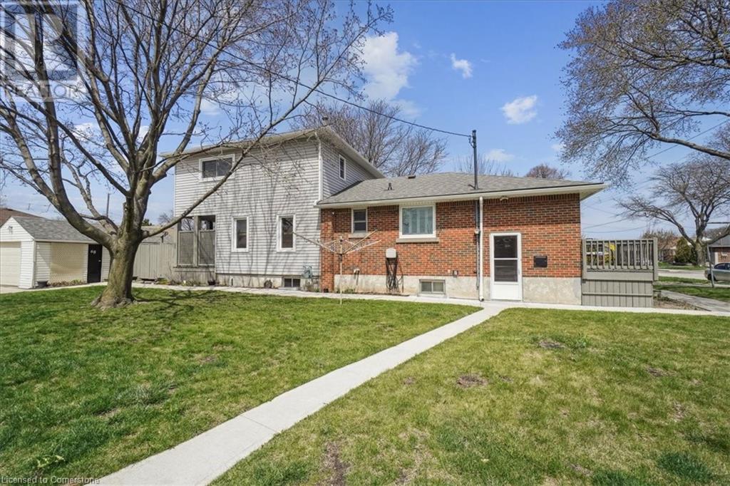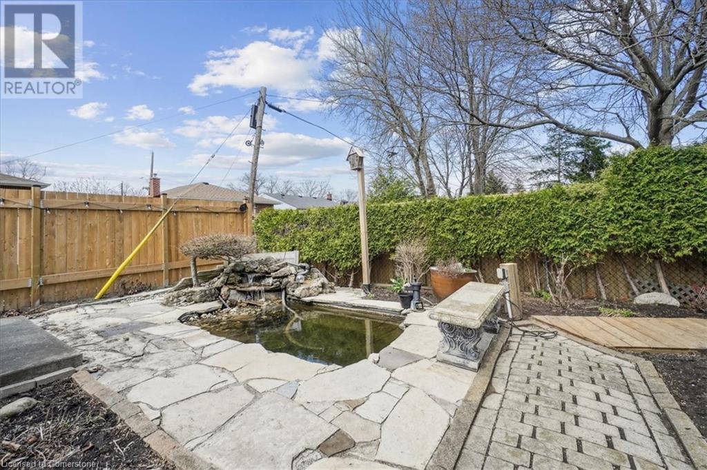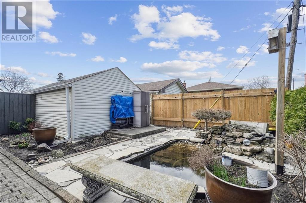 Timeless charm meets thoughtful expansion in the heart of Hamilton’s family-friendly Hampton Heights neighbourhood. From the moment you enter the foyer, you'll appreciate the evident pride of ownership and thoughtful touches throughout. The modern kitchen features timeless shaker-style cabinetry, granite countertops, travertine tile flooring and backsplash, and ample pot lighting. The open-concept main living space offers resilient laminate flooring and flows seamlessly into a generously sized dining area ideal for both entertaining and everyday comfort. A rare two-storey rear addition enhances the home with a spacious main-floor bedroom, a bright and inviting second living room with custom built-ins, pot lights, and sliding patio doors leading to the serene backyard. A 3-piece bathroom with walk-in shower completes the main level. Upstairs, you'll find two oversized bedrooms with generous closets and a 4-piece bathroom with vanity sink. The finished lower level adds excellent living space with a large recreation room featuring a cozy wood-burning fireplace, a 2-piece bathroom, laundry room, and a utility area with ample storage. Set on a large corner lot, the exterior offers a detached garage, multiple parking spots, and a beautifully landscaped backyard with a covered deck, interlocking patio, and tranquil pond. Close to Red Hill Valley Parkway, top-rated schools, shopping, parks, and more this is a move-in-ready home with space and flexibility for every stage of life. (id:16766)