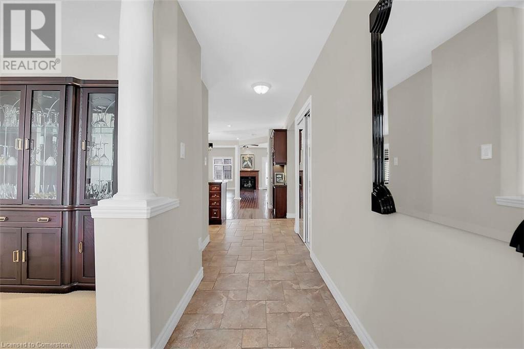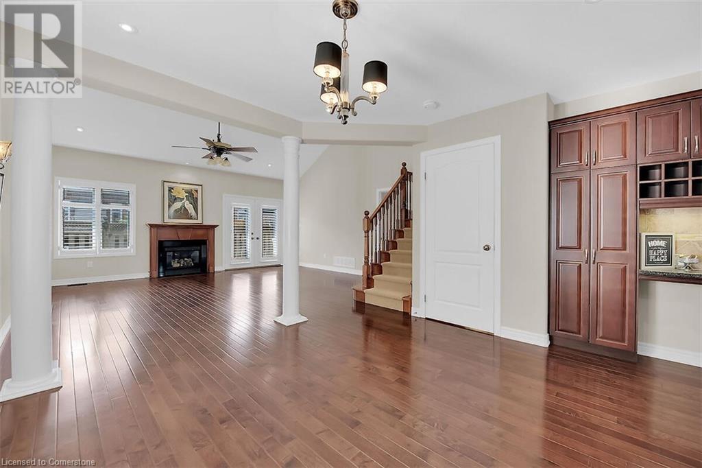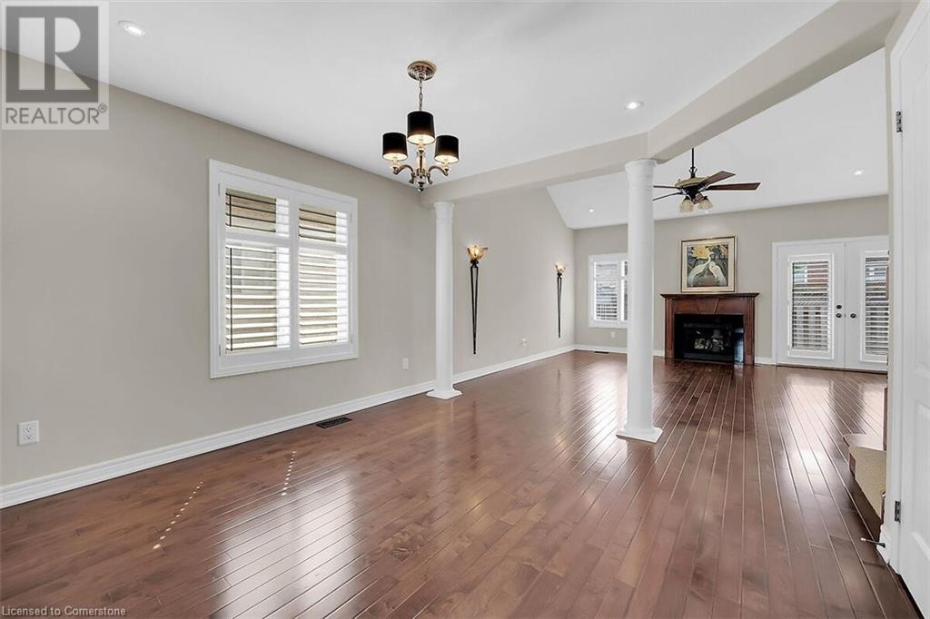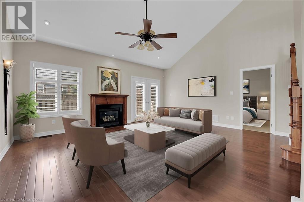 LOW MAINTENANCE, TURN-KEY LIVING AT ITS BEST IN GARTH TRAILS! One of Southern Ontario's most popular adult-lifestyle communities. This is where the living is easy! Enjoy the many great amenities and activities this friendly adult community has to offer! There is indoor pool, sauna, whirlpool, gym, library, games & craft rooms, a grand ball room, tennis/pickle ball court, shuffleboard & bocce courts and much more! Take a stroll through the private parkland, around the pond, and be welcomed by the quiet and the wildlife. This elegantly appointed, end unit bungaloft has double garage and is just steps to the private residents' clubhouse. Gleaming hardwood floors, rounded corners, decorative pillars, a gas fireplace, sconce lighting, pocket doors and pot lights are just some of the many beautiful features in this home. The main floor primary bedroom has a walk-in closet and 4 pc bathroom with soaker tub and separate shower. Stainless steel appliances, breakfast bar, undercabinet lighting and custom pantry w/wine rack are featured in the kitchen, open concept to the spectacular great room with gas fireplace, vaulted ceiling with pot lights and patio door to the large, private deck with hard cover gazebo. At the front of the home, the dining room, with decorative pillars and pot lights, would also work well as a welcoming sitting room. There is inside entry from the double garage to the main floor laundry room with linen closet, storage cabinets and washer and dryer included. Solid stairs lead to the loft, with lovely rounded handrails and spindles overlooking the great room. A light and bright guest bedroom with walk-in closet and a 3 pc bathroom are featured in the welcoming loft. Put your own style into the unfinished basement! This is adult living at its best, and an address you'll be proud to call home! Some photos are Virtually Staged. (id:16766)