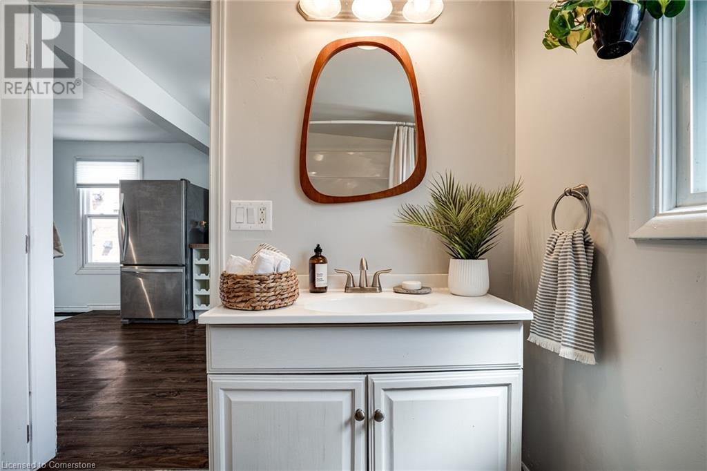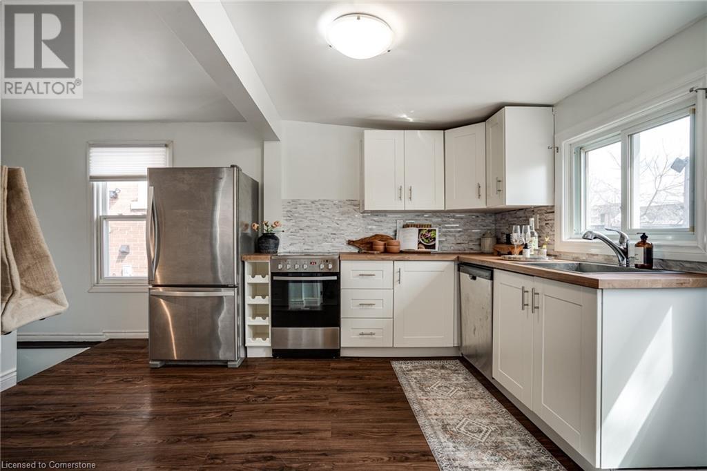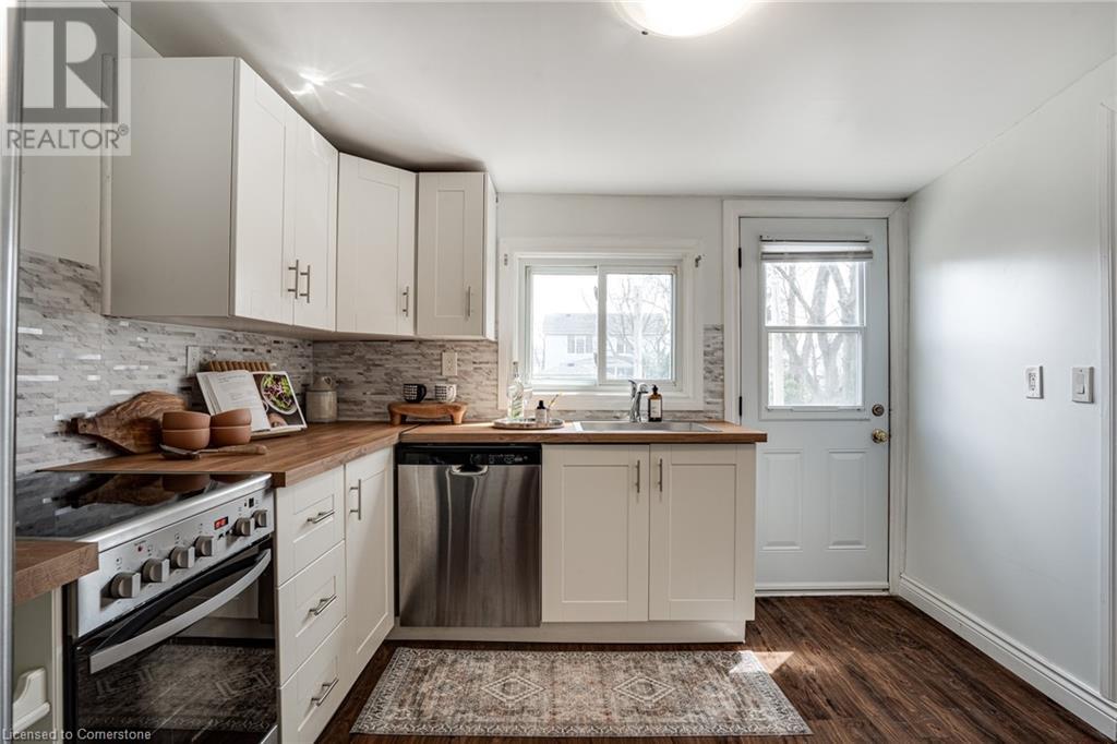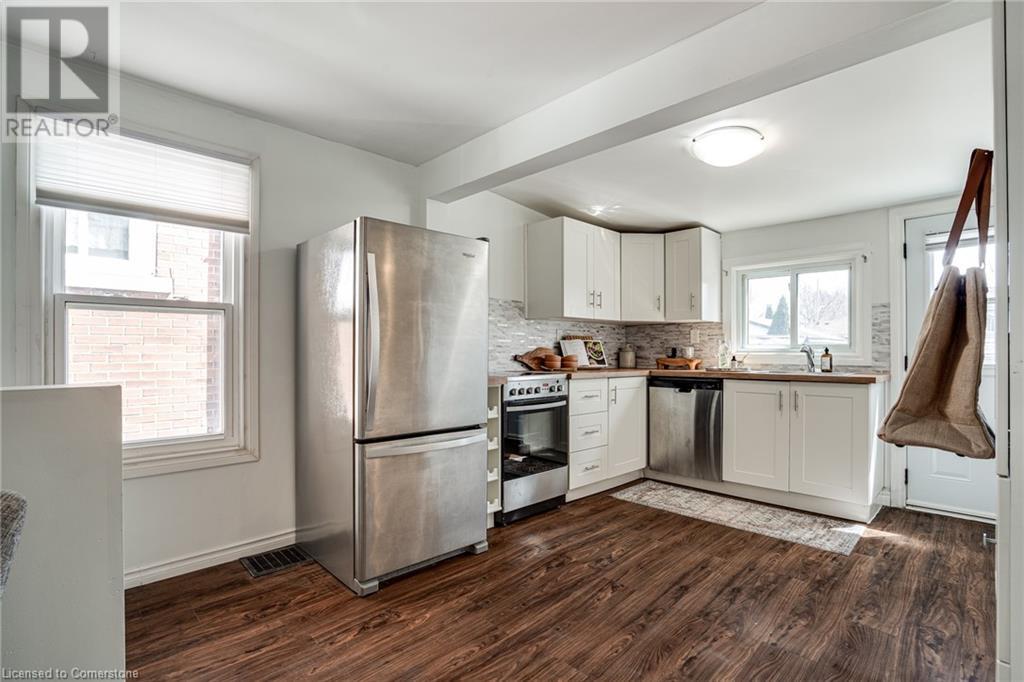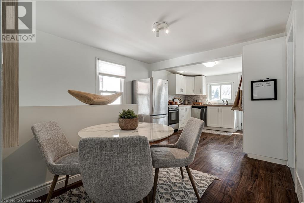 Super cute bungalow with two bedrooms & one 4-piece bathroom on a great lot, with two car parking, not far from Concession St Village, and with easy access to downtown, the Linc, transit, bike trails, and shopping. The property has been freshly painted, the combo dining room + kitchen has been modernised and updated, the bathroom is big enough to party in, and the unfinished basement has been waterproofed to keep your storage and belongings safe. Large and sturdy walk-out patio overlooks a huge grassy back yard, and access from the alley at the rear of the property makes additional storage, parking, or even a laneway home / accessory dwelling unit possible. Solid foundation with professionally installed waterproofing system? Check. Updated plumbing, windows, doors, and roof? Check. Water heater, furnace, and AC all less than 4 years old? Check. If you're reading this, you're probably a first time buyer or a downsizer, and if you want a reliable, comfortable, and stylish home that suits just what you need, this is the home you're looking for. (id:16766)