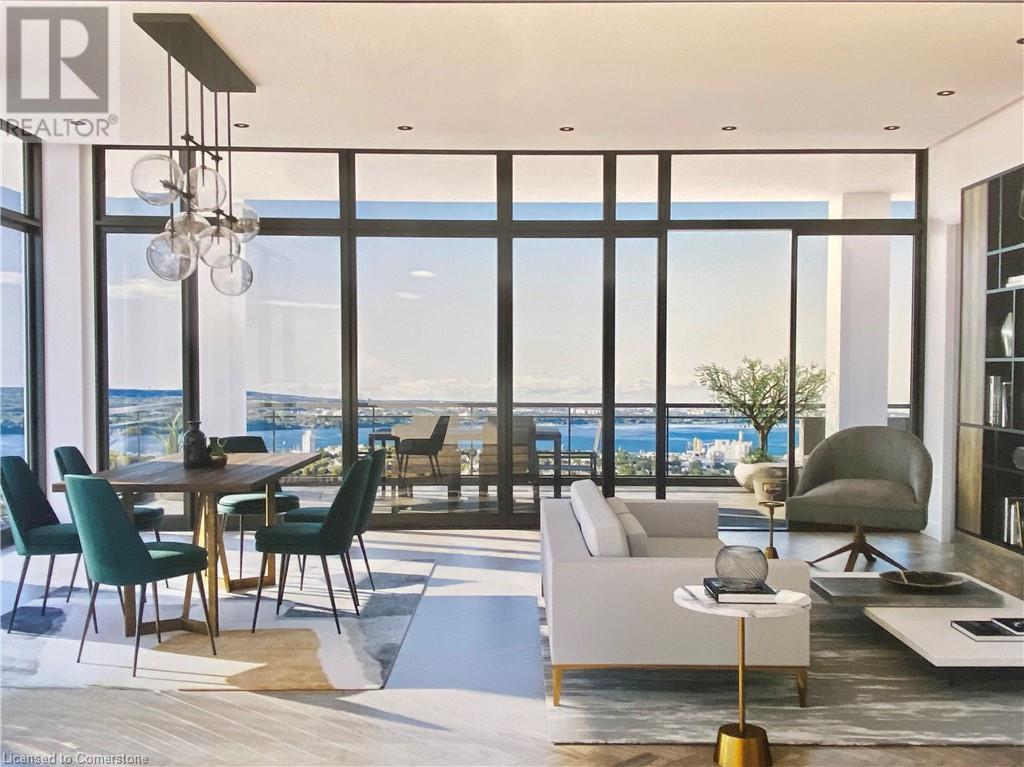 The AMBIENT, one bedroom collection, in the prestigious MODERNE, Tower One at the Royal Connaught Square. To be built with the same unrivalled luxurious finishes and expectations you've come to know of this iconic complex. This exquisite condominium building is locate in the heart of downtown Hamilton with an exterior facade of state of the art reflective glass and a monumental deco inspired podium. The AMBIENT offers sleek finishes of quartz counters, built in appliances, European cabinetry. Thoughtfully crafted for space saving features. Entry level suite with 563 Sq Ft plus balcony. Exclusive amenities dedicated to the lifestyle of opulence. Landscaped rooftop terrace. Guest suite. The social club features billiards & lounge room, wine tasting room, fireside lounge, flexible dining areas, co-work spaces, caterer's kitchen, wine lockers and private meeting rooms. Underground parking units available, 1 per unit and lockers available for purchase in addition to purchase price. (id:16766)