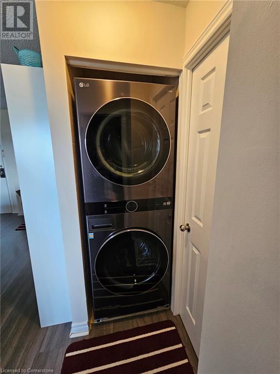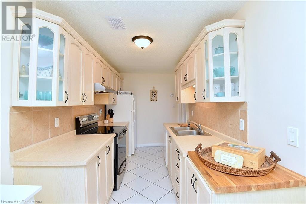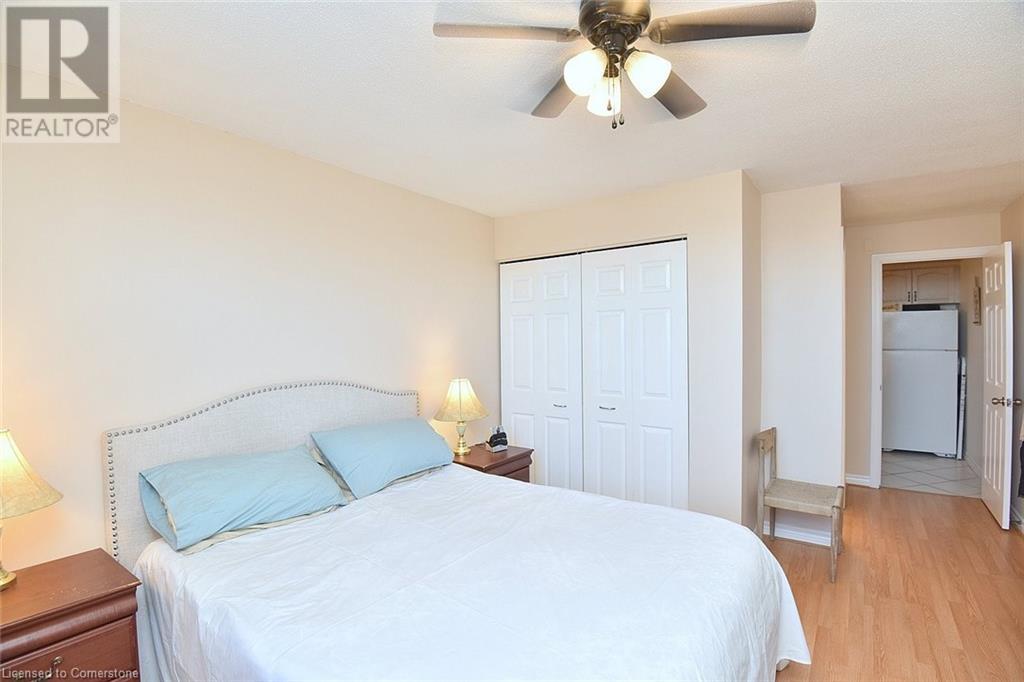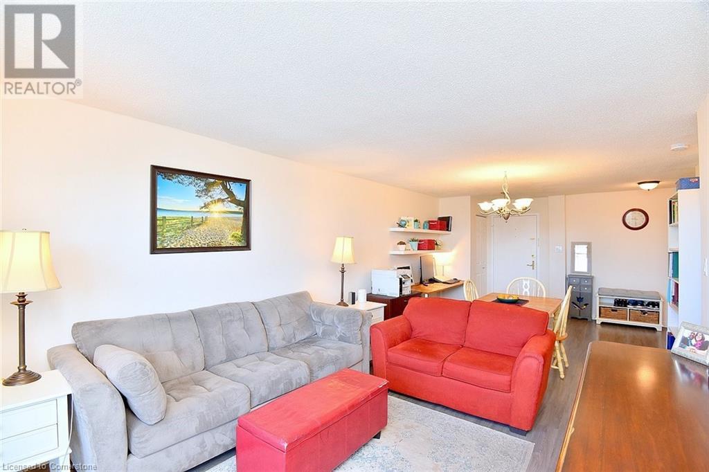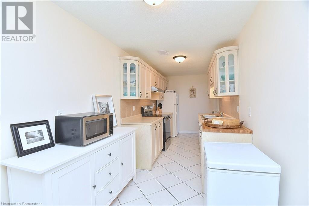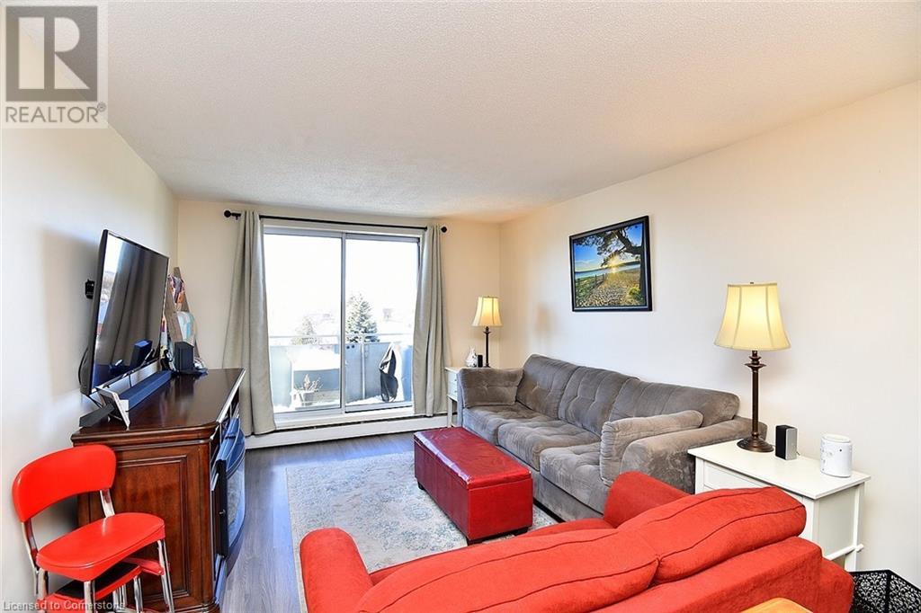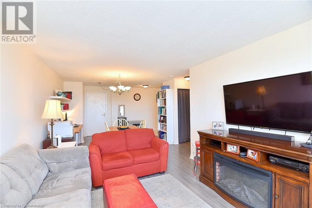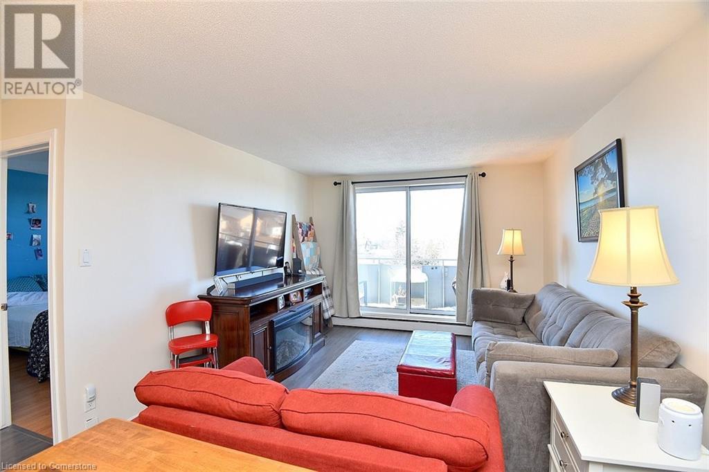 Prime Location near Mountain Brow - this Top floor condo apartment featuring 2 Bedrooms + 2 Baths (primary with ensuite) PLUS 2 Exclusive Parking Spots, makes it a Unique find. Being a short 10-minute walk to Juravinski Hospital, close to parks, buses, shopping and easy highway access, this location is ideal. The spacious, open-concept design seamlessly connects the living, dining and kitchen areas, creating an inviting and airy atmosphere. The galley kitchen is fully equipped with appliances and ample cabinet space, perfect for cooking and entertaining. The living room provides sliding door access to the over-sized, private balcony to enjoy Southern exposure. For your convenience, the In-Suite, stackable Ventless Washer & Dryer AND exclusive storage locker on the same floor, are Added conveniences. The bedrooms are generously sized with large windows allowing plenty of natural light. Enjoy hassle-free living in an extremely well-maintained building with condo fees that cover radiant heat, water, building maintenance, common area upkeep and added Security System in parking area. This condo is the perfect combination of comfort, convenience and value in an ideal location. (id:16766)