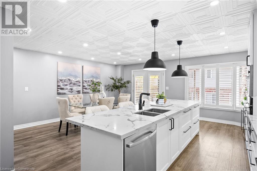 A quiet, tucked-away pocket in Aldershot South. Thoughtfully designed—it’s got real space, real function, and real value. Inside, the layout makes sense. Big open kitchen, freshly painted, stainless steel appliances, a massive island, and a walk-out balcony for morning coffee or evening cocktails. A major renovation was done between 2020-2021 and rebuilt the kitchen with extra storage drawers, induction stove top, granite counters, undermount lighting, top quality California Shutters, all potlights and fixtures, all bathrooms and more. The upper level has a primary suite with B/I closet system, a windowed ensuite, and a large tiled walk-in shower. The lower level has an additional living room with a gas fireplace and a walk-out to the backyard. This flex space would make a great office or gym. There’s a second bedroom and a big bathroom with a TV mount next to a deep, soaker tub. The basement has the laundry room and the super convenient walk-out to underground parking. 2 large, personal parking spaces and 2 large storage lockers. It’s called King Arthur’s Court, it’s quiet, well-run, and handles the big stuff—windows, doors, shingles—without you chasing quotes or contractors. Bonus, they do the lawns and snow too so you can just relax. If you want turnkey living in a safe, friendly, south Burlington community that feels like a hidden gem, this is the move. (id:16766)